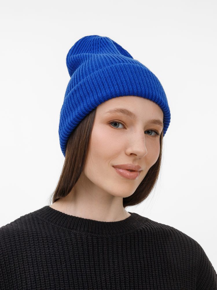 Удлиненный силуэт шапки Nobilis Mono из мягкой полушерстяной пряжи с широким отворотом создает стильный современный образ, а фактурная вязка добавляет объем и выразительность.