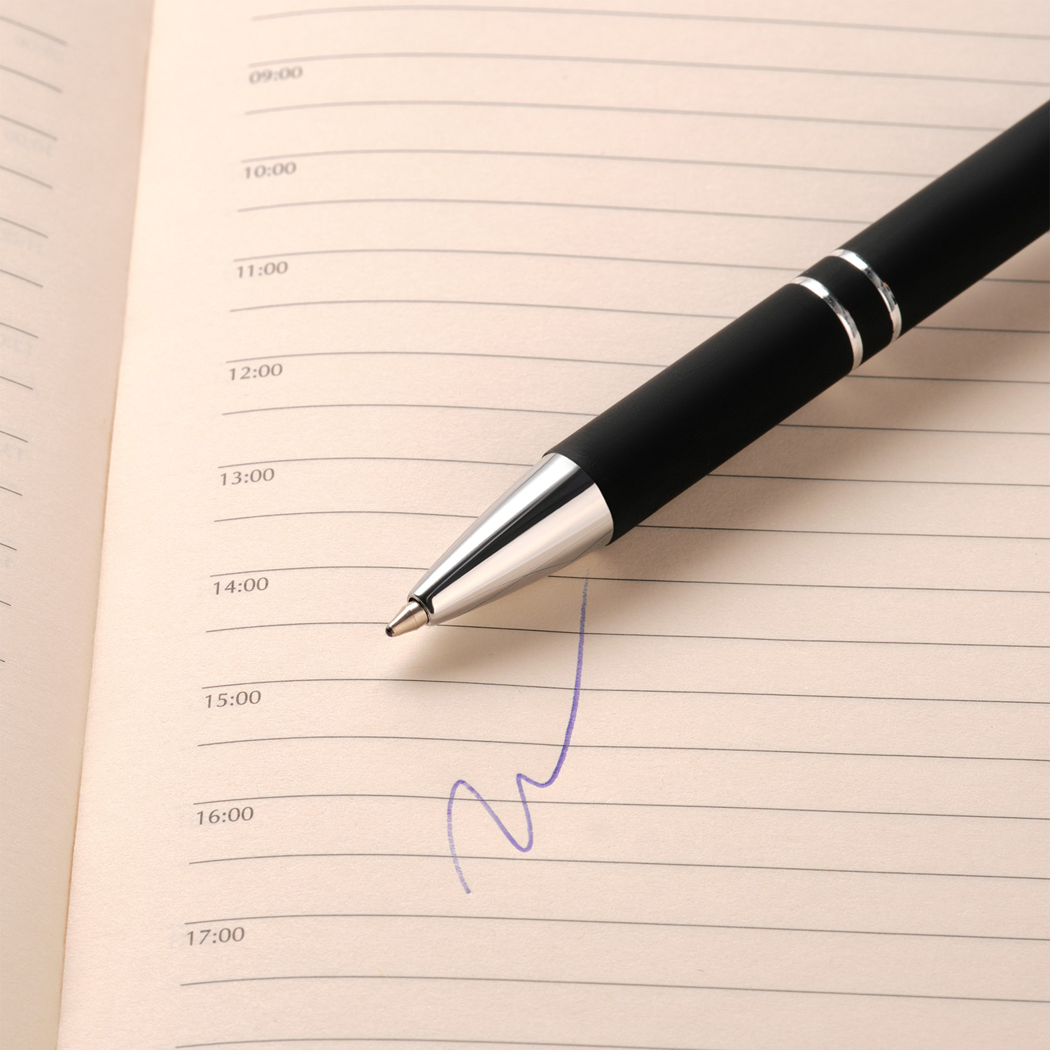 Классическая ручка в шелковистом покрытии soft touch станет прекрасным инструментом для письма. Хромированные детали – два декоративных кольца и функциональный надежный клип.