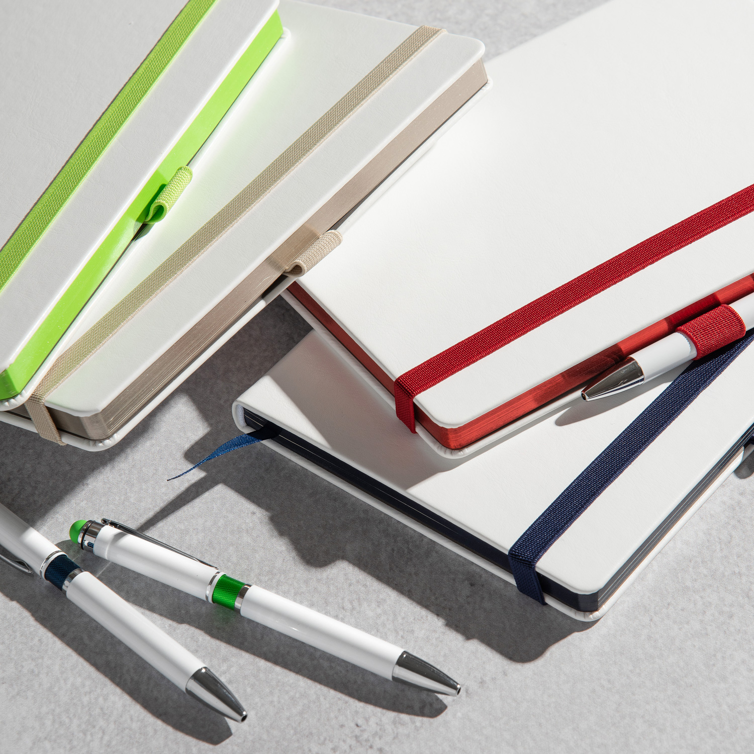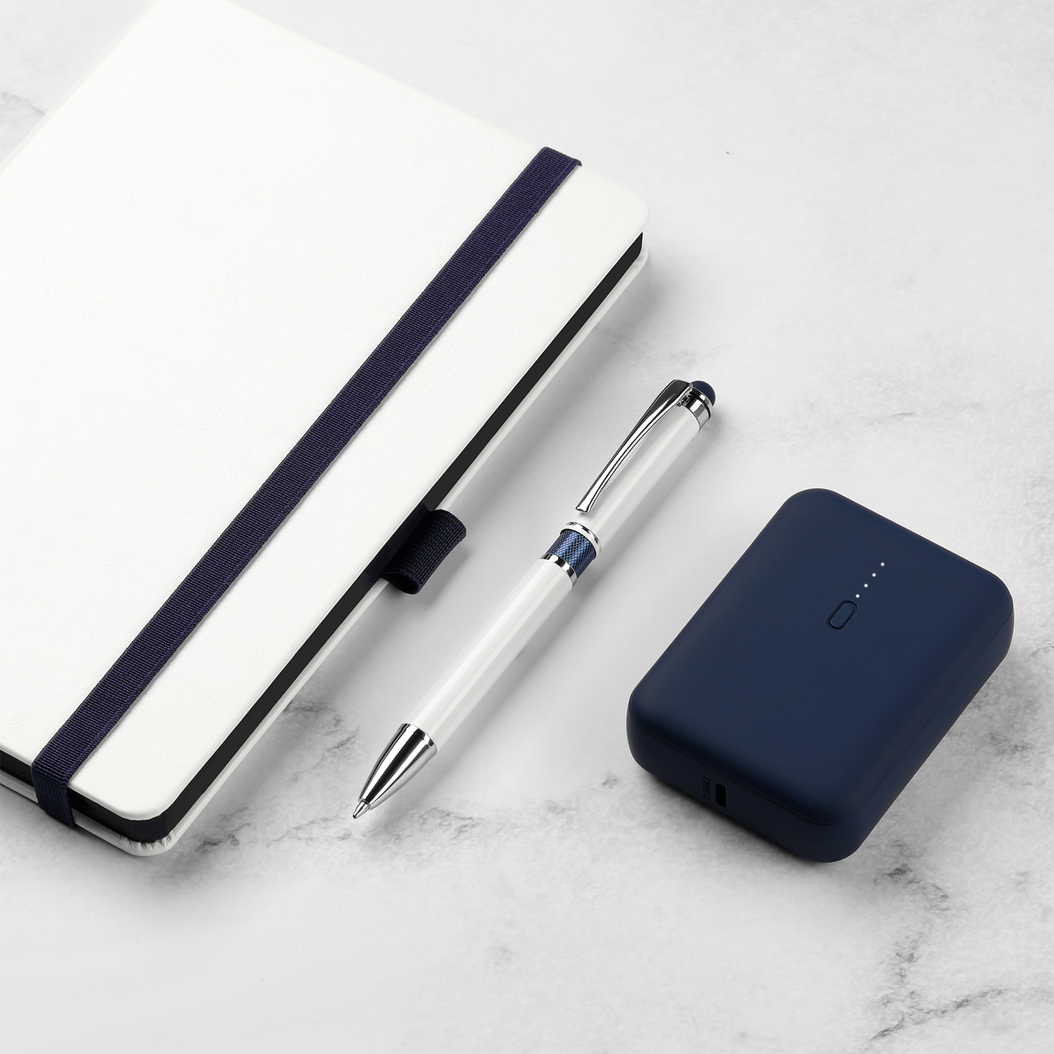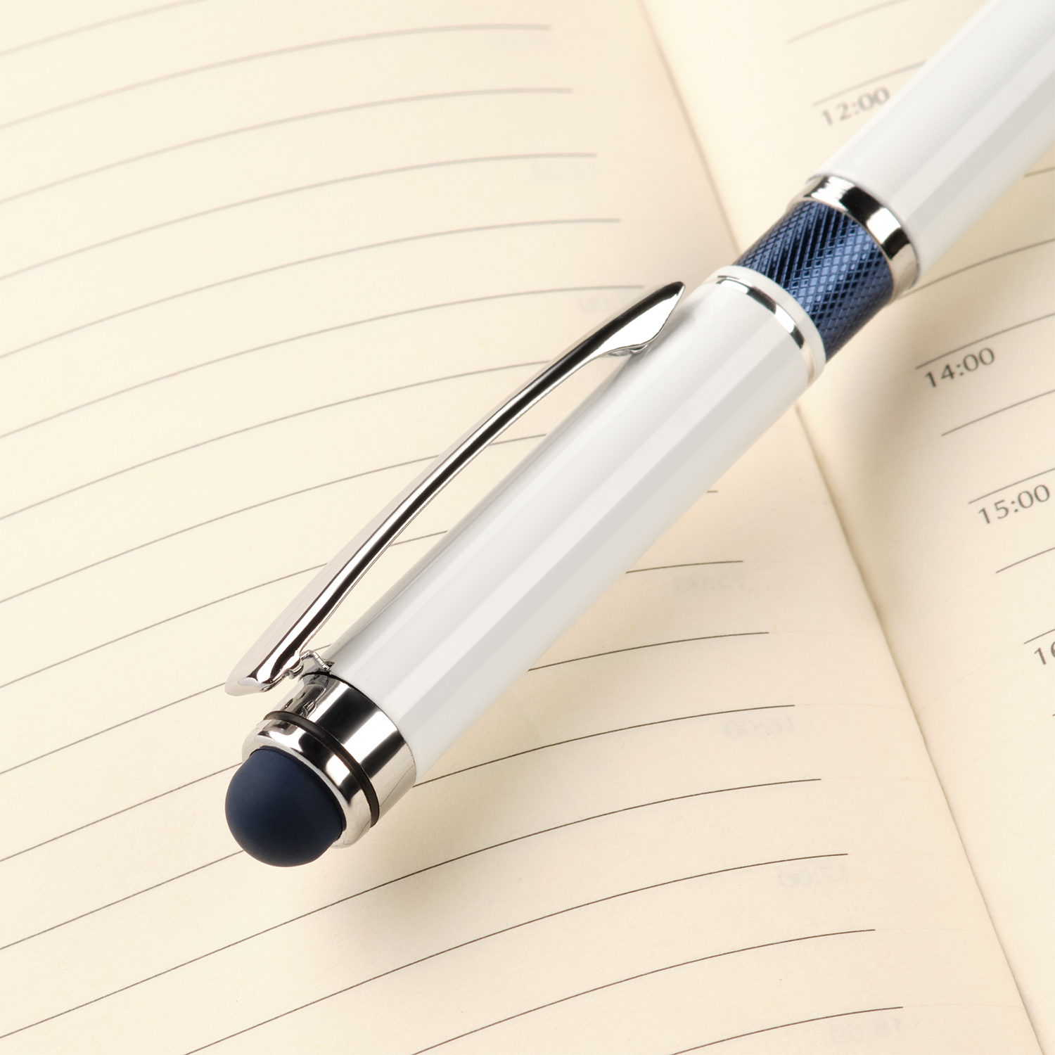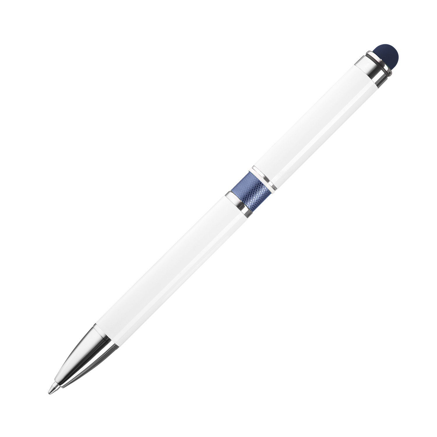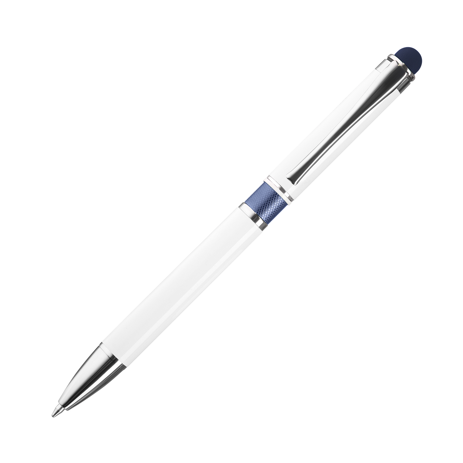 Алюминиевая ручка с белым корпусом, цветной вставкой и стилусом в цвет вставки.