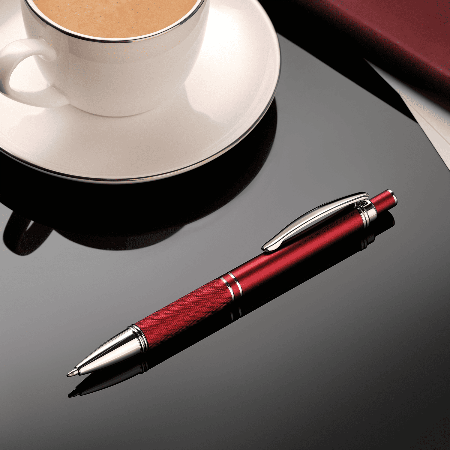 Элегантная шариковая ручка с ярким глянцевым корпусом и хромированными деталями.