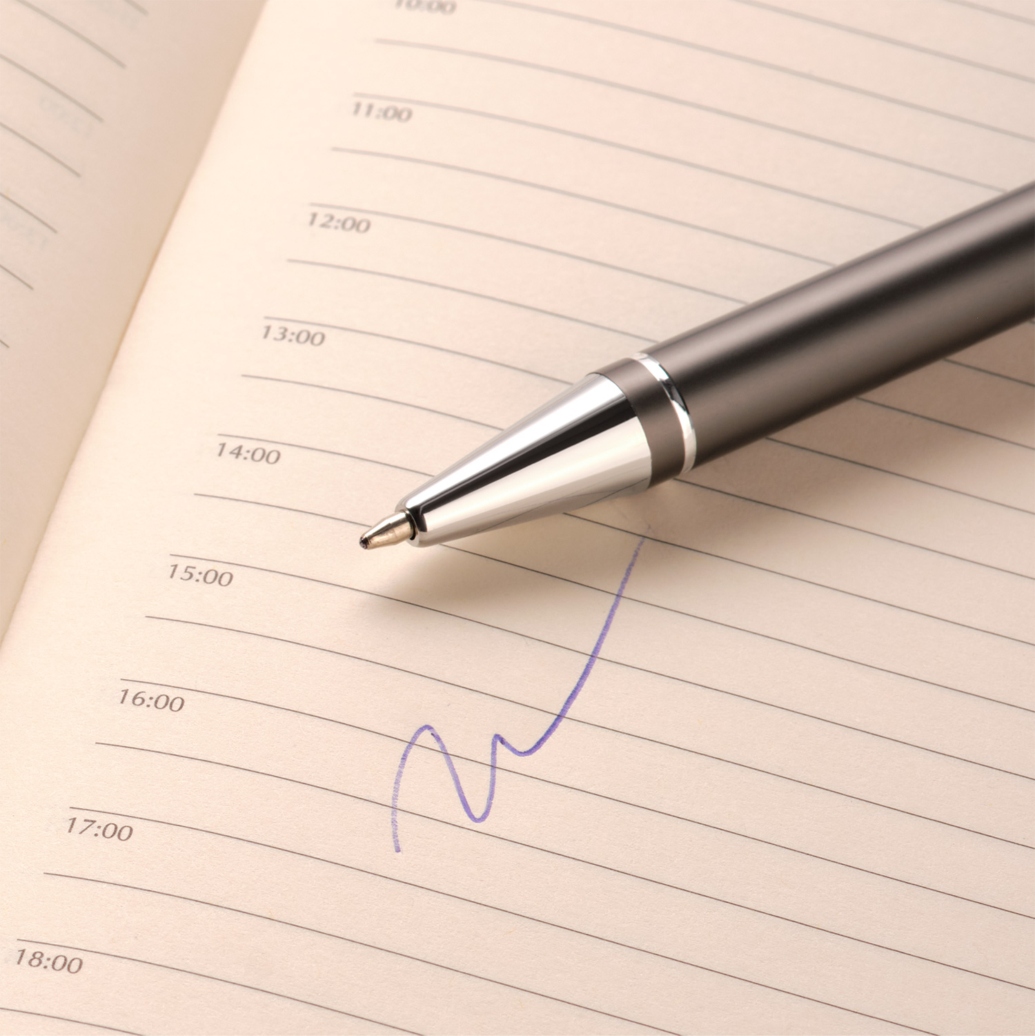 Классическая ручка эргономичной формы выполнена в строгом стиле. Декоративные детали в виде хромированного кольца у основания и клипа придают ручке элегантность.
