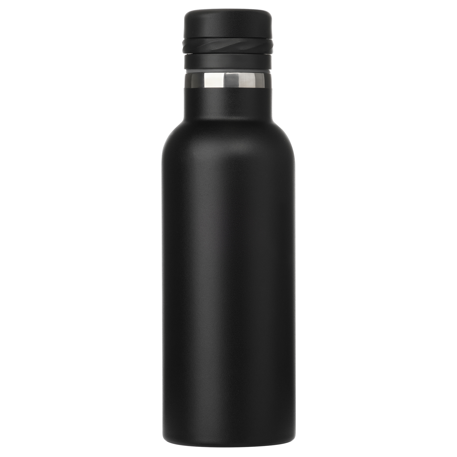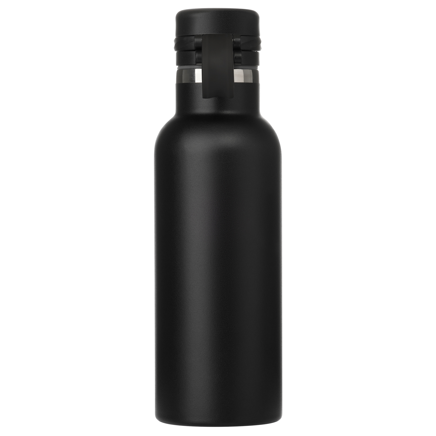 Вакуумная герметичная конструкция выполнена из двухслойной высоколегированной стали 304 марки, что делает конструкцию более прочной и устойчивой к мелким сколам и царапинам. Крышка из высококачественного пластика, оснащена удобной силиконовой петелькой для переноски. Бутылку можно переворачивать и класть в сумку.