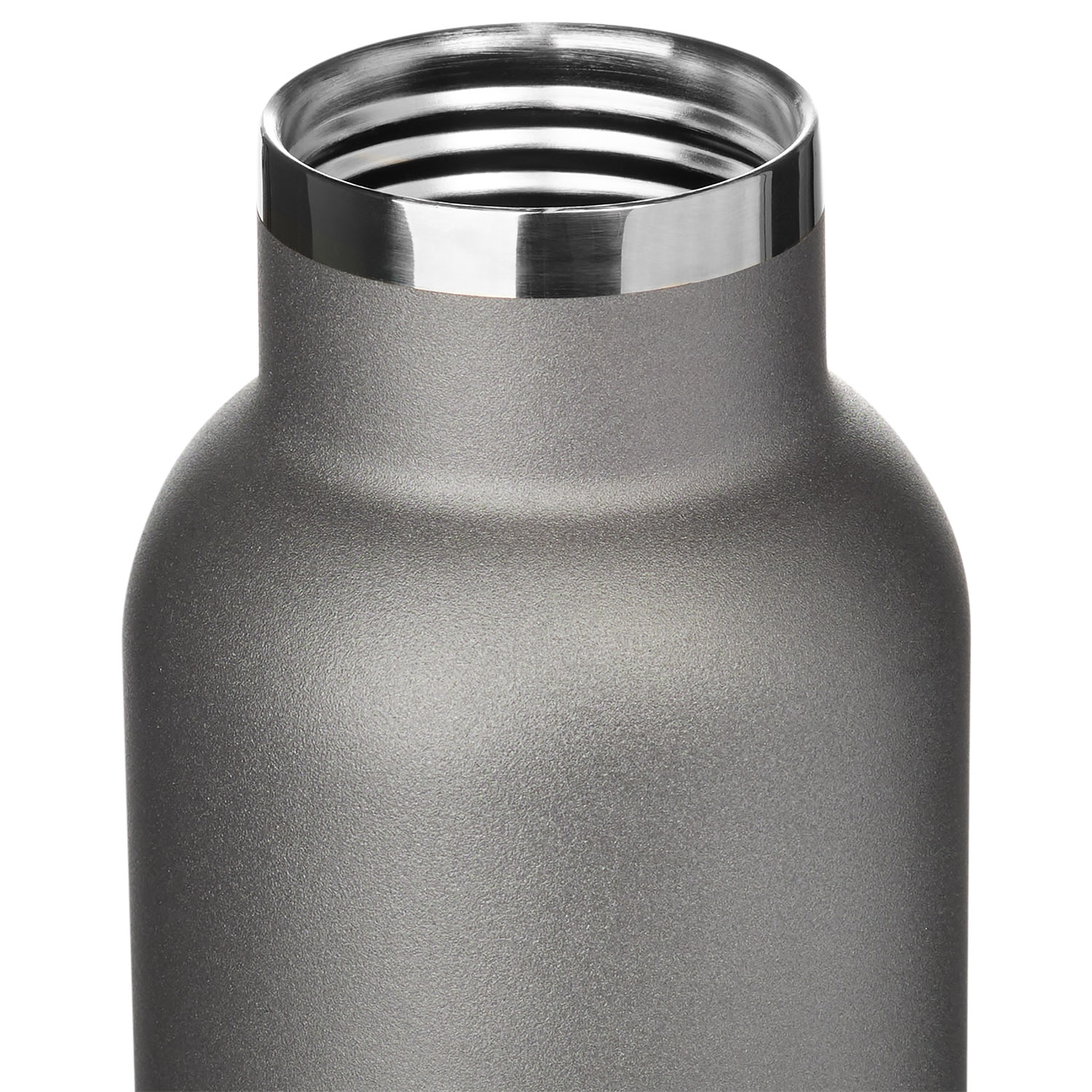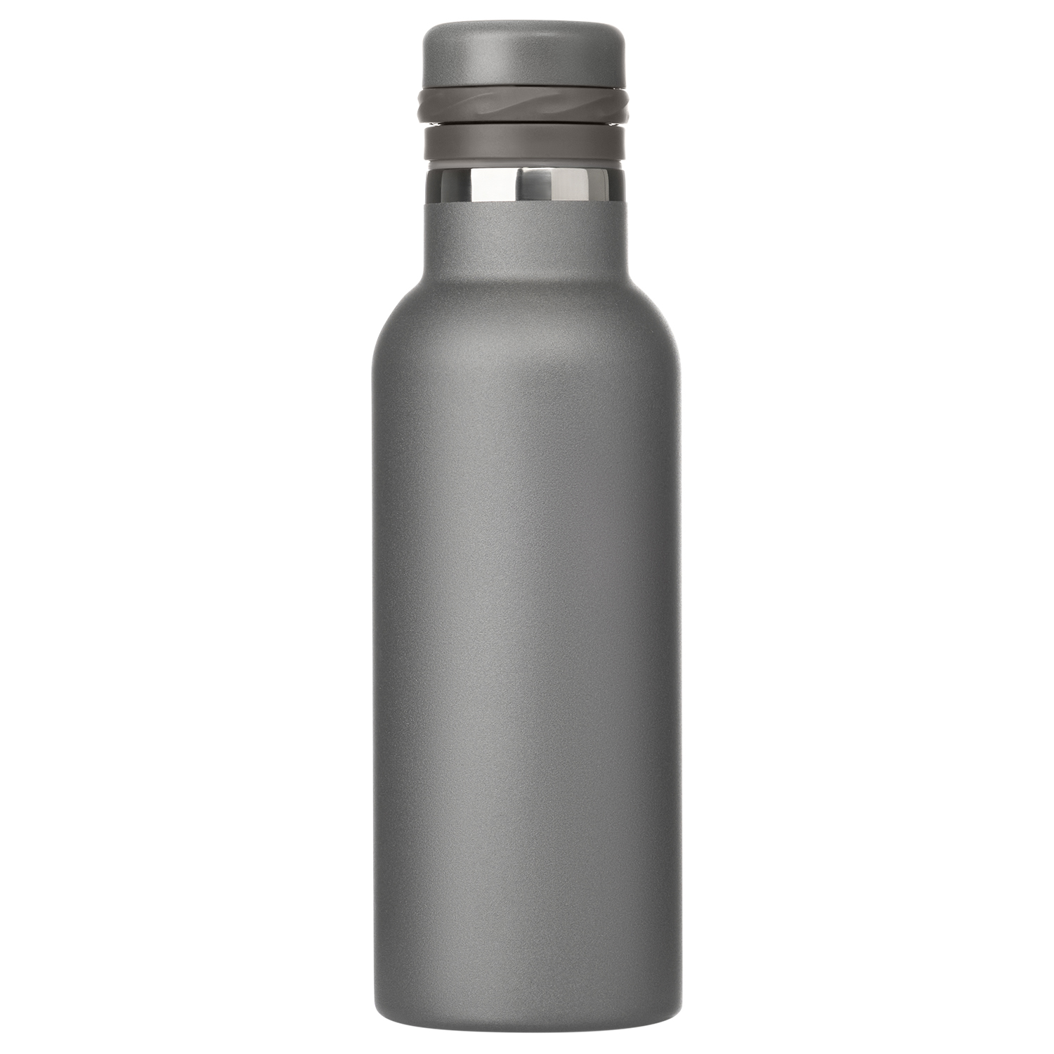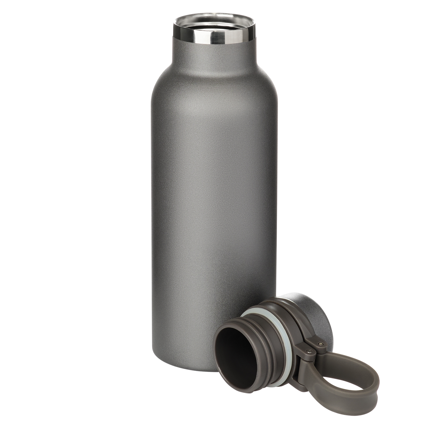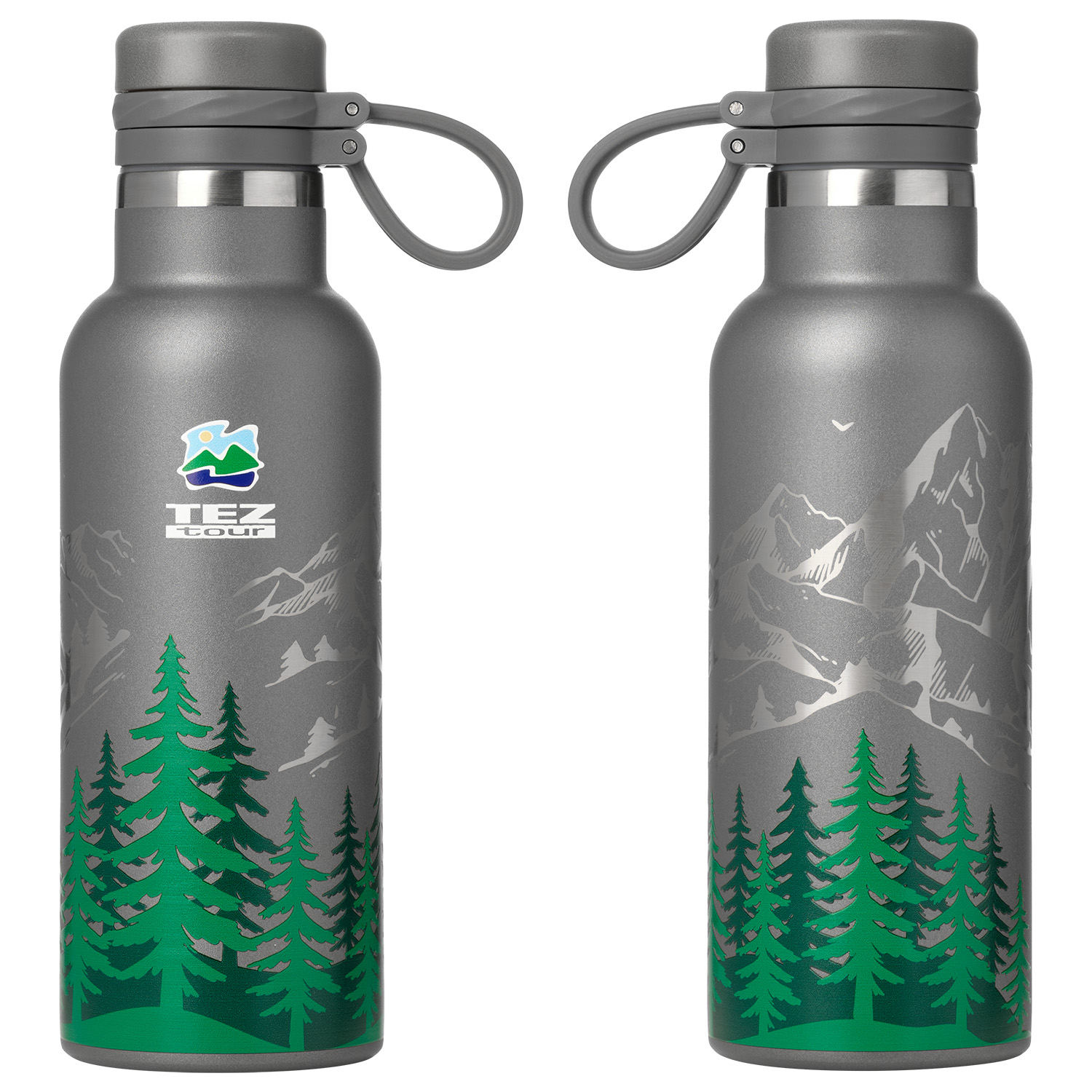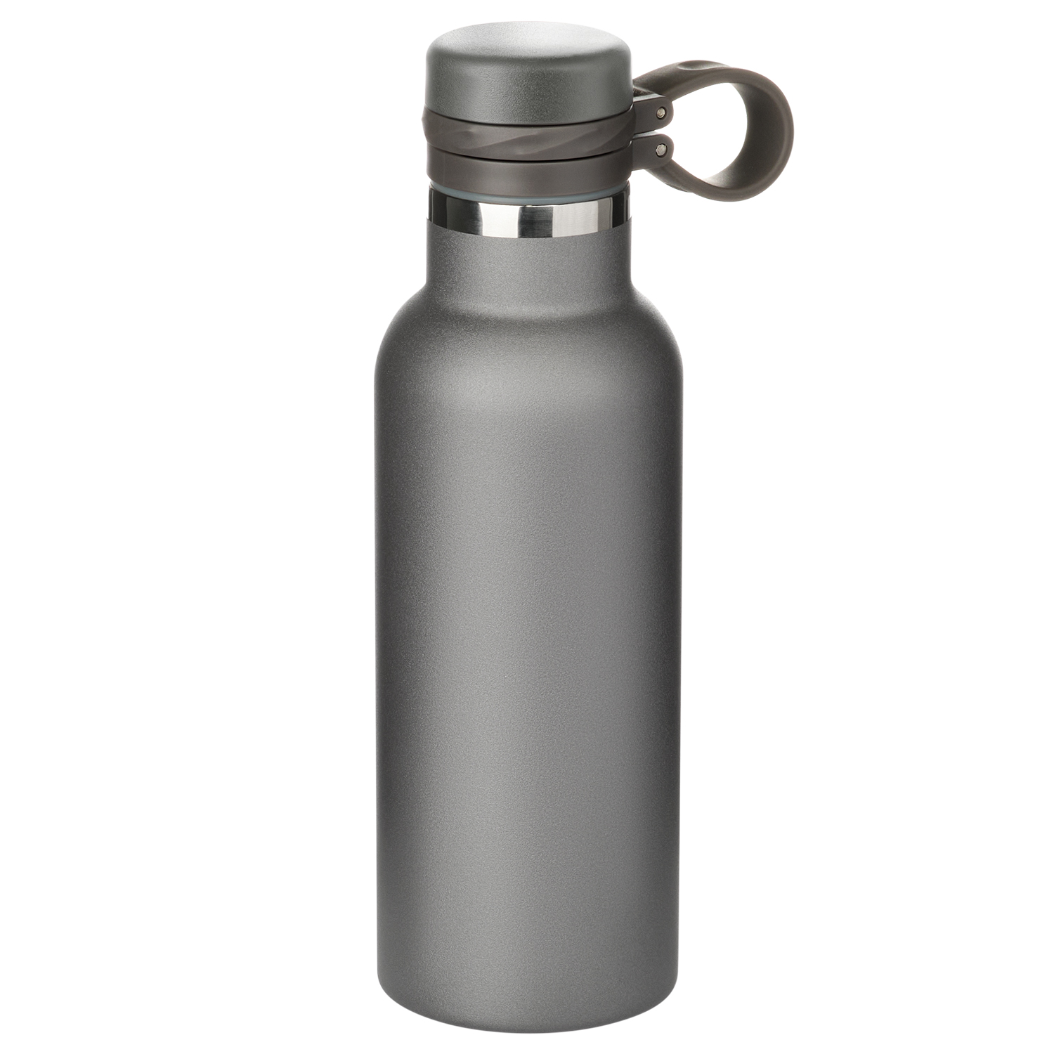 Вакуумная герметичная конструкция выполнена из двухслойной высоколегированной стали 304 марки, что делает конструкцию более прочной и устойчивой к мелким сколам и царапинам. Крышка из высококачественного пластика, оснащена удобной силиконовой петелькой для переноски. Бутылку можно переворачивать и класть в сумку.