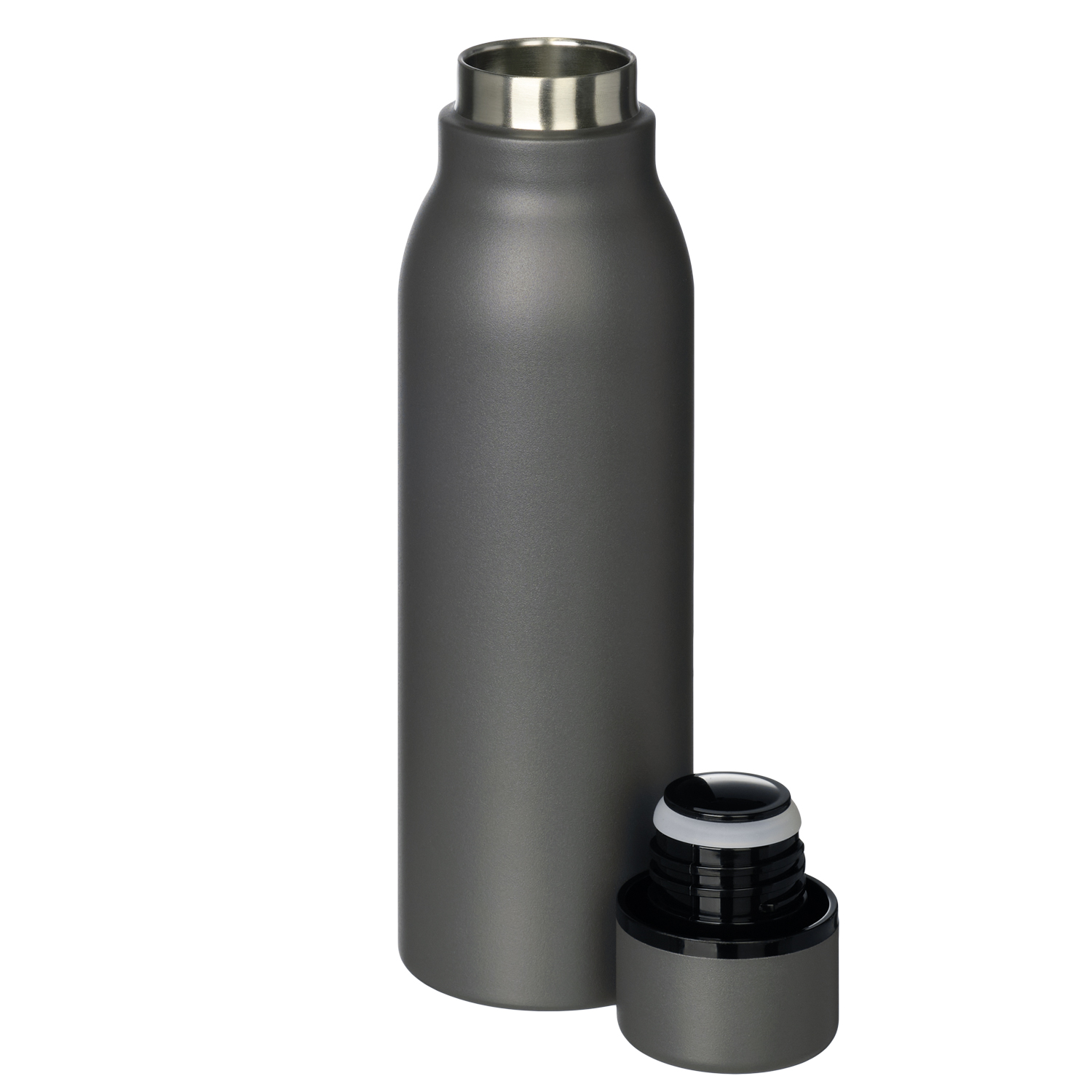Термобутылку классической формы удобно брать с собой в офис, спортзал, на пробежку или в поход. Крышка в цвет корпуса, полностью литой корпус бутылки, вакуумная герметичная конструкция из двухслойной высоколегированной стали марки 304, порошковое покрытие корпуса и крышки.