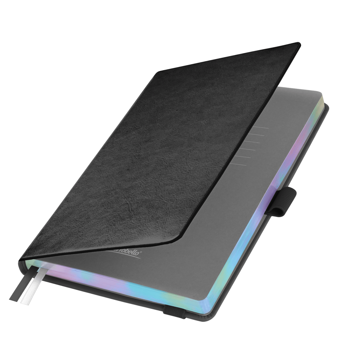 Недатированный ежедневник в жесткой обложке из качественной искусственной кожи. Материал обложки гладкий, текстурированный, с полуглянцевым блеском. Скругленные углы обложки и внутреннего блока. Отличительная особенность коллекции — голографический фольгированный срез блока. Форзац/нахзац– серые. Вариант в жесткой обложке украшен широкой вертикальной резинкой-фиксатором с вставкой из ПУ-материала обложки и петелькой под ручку, а также двойным ляссе (серым и в тон обложки).