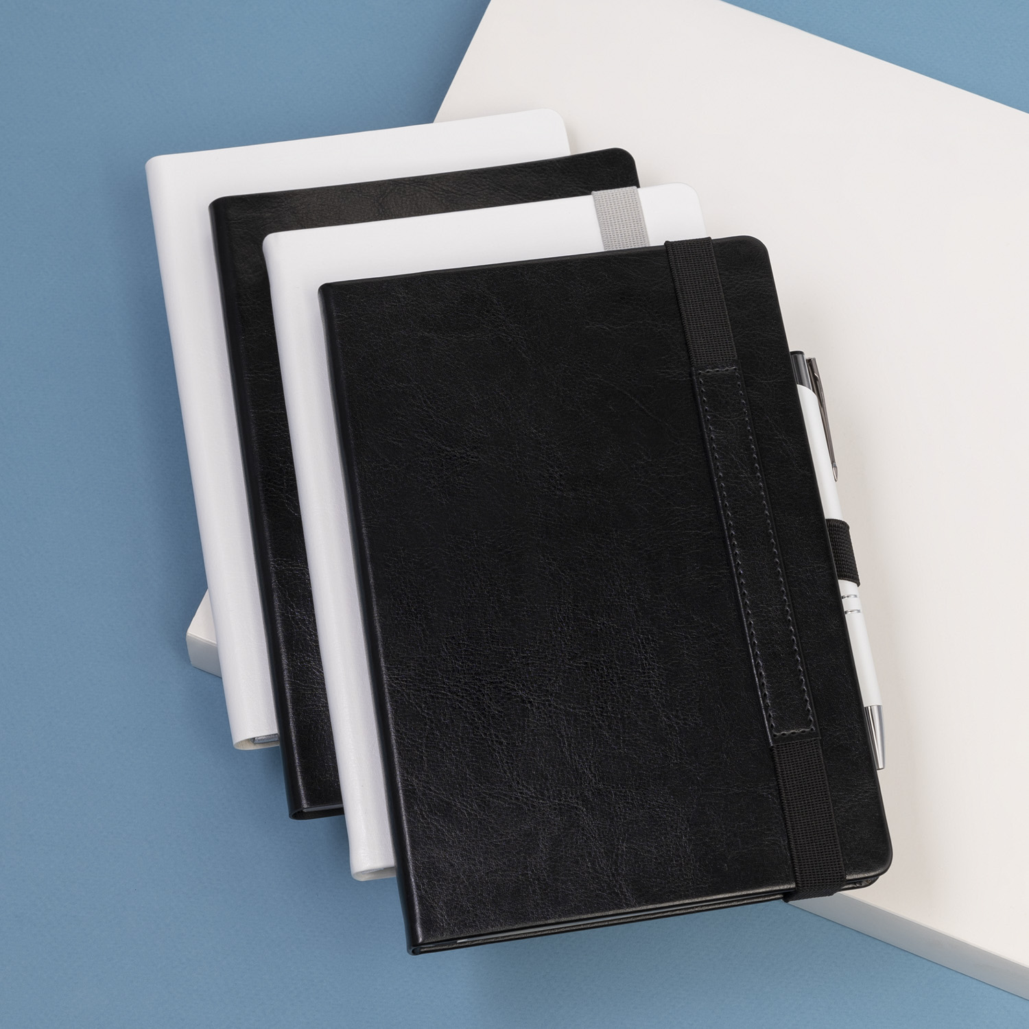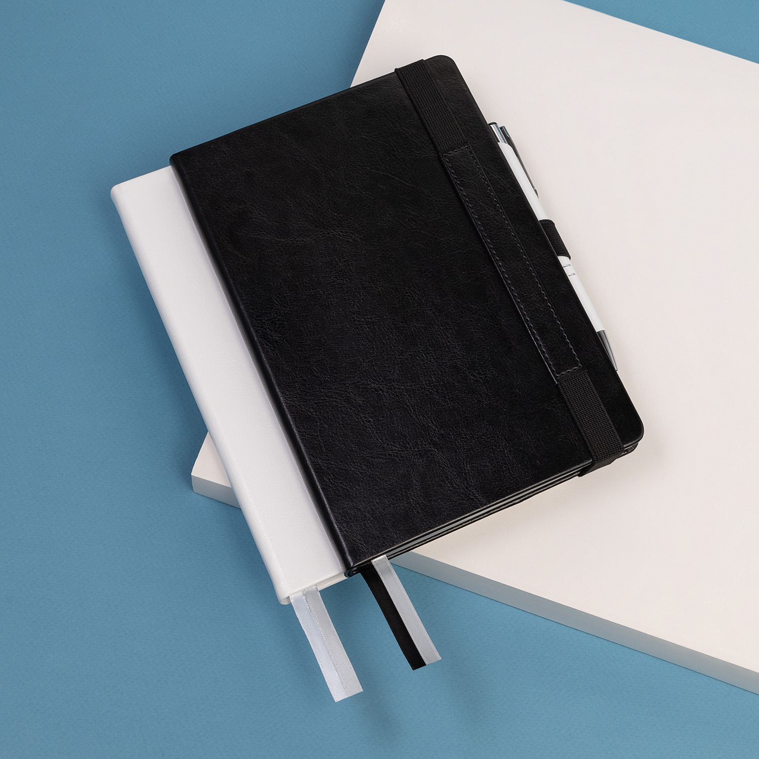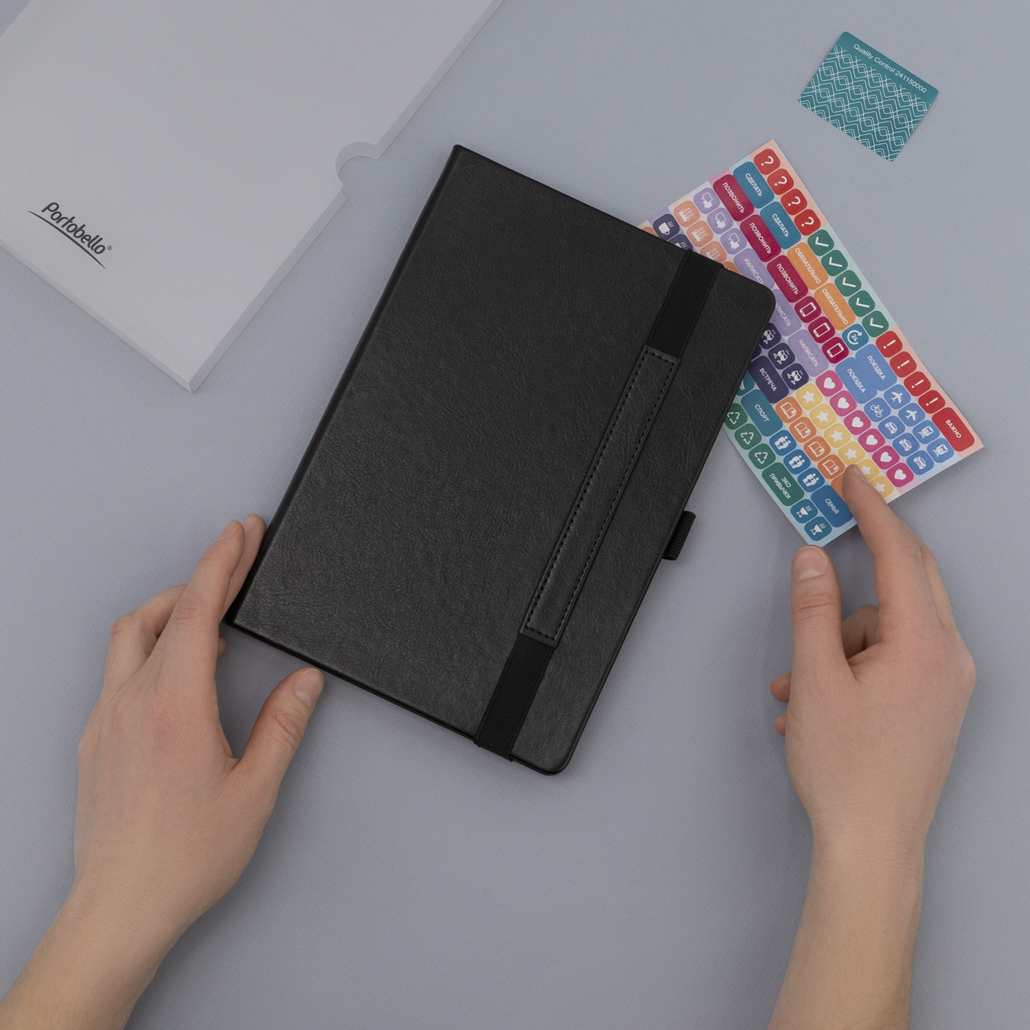Вертикальная резинка-фиксатор с вставкой из ПУ-материала обложки и петелькой под ручку