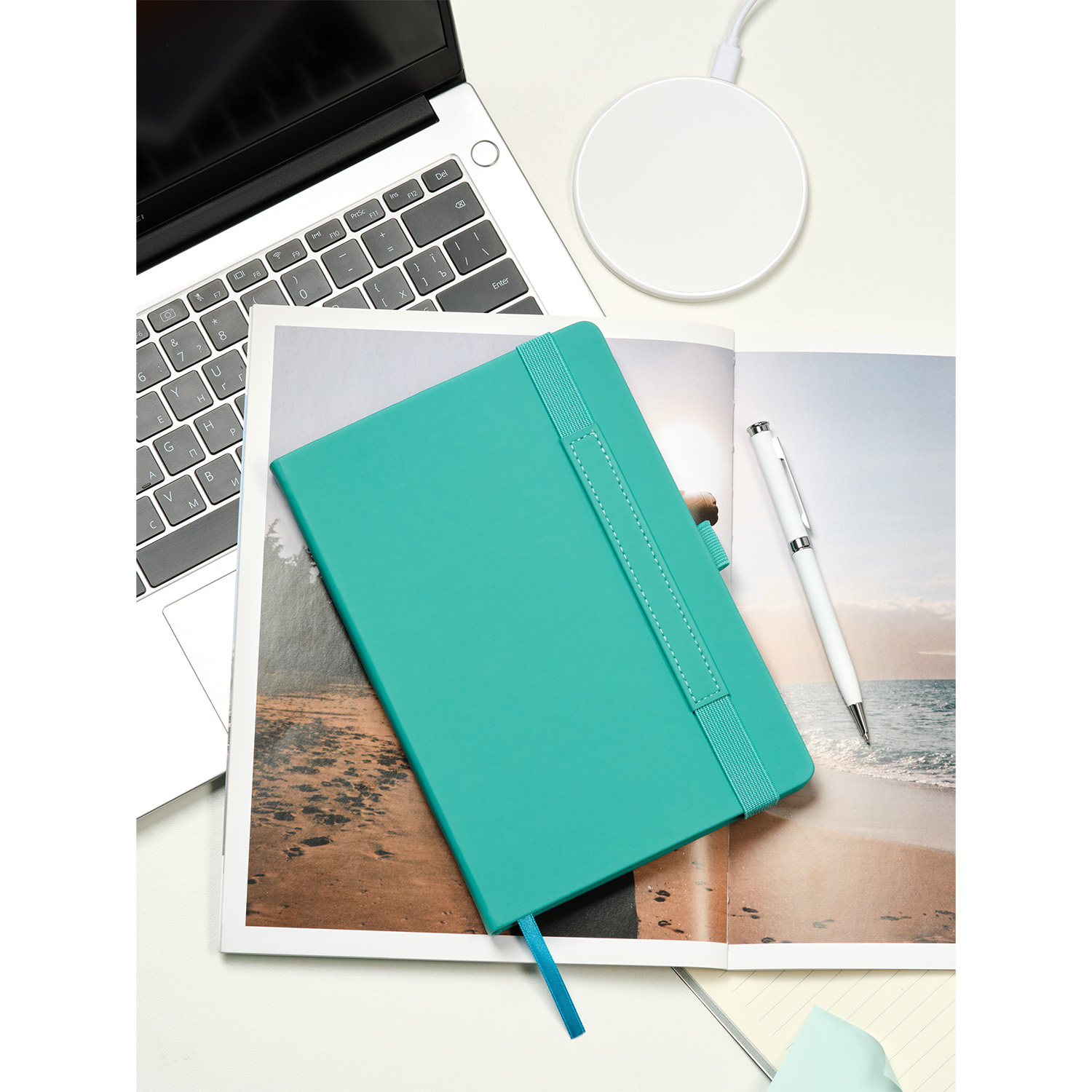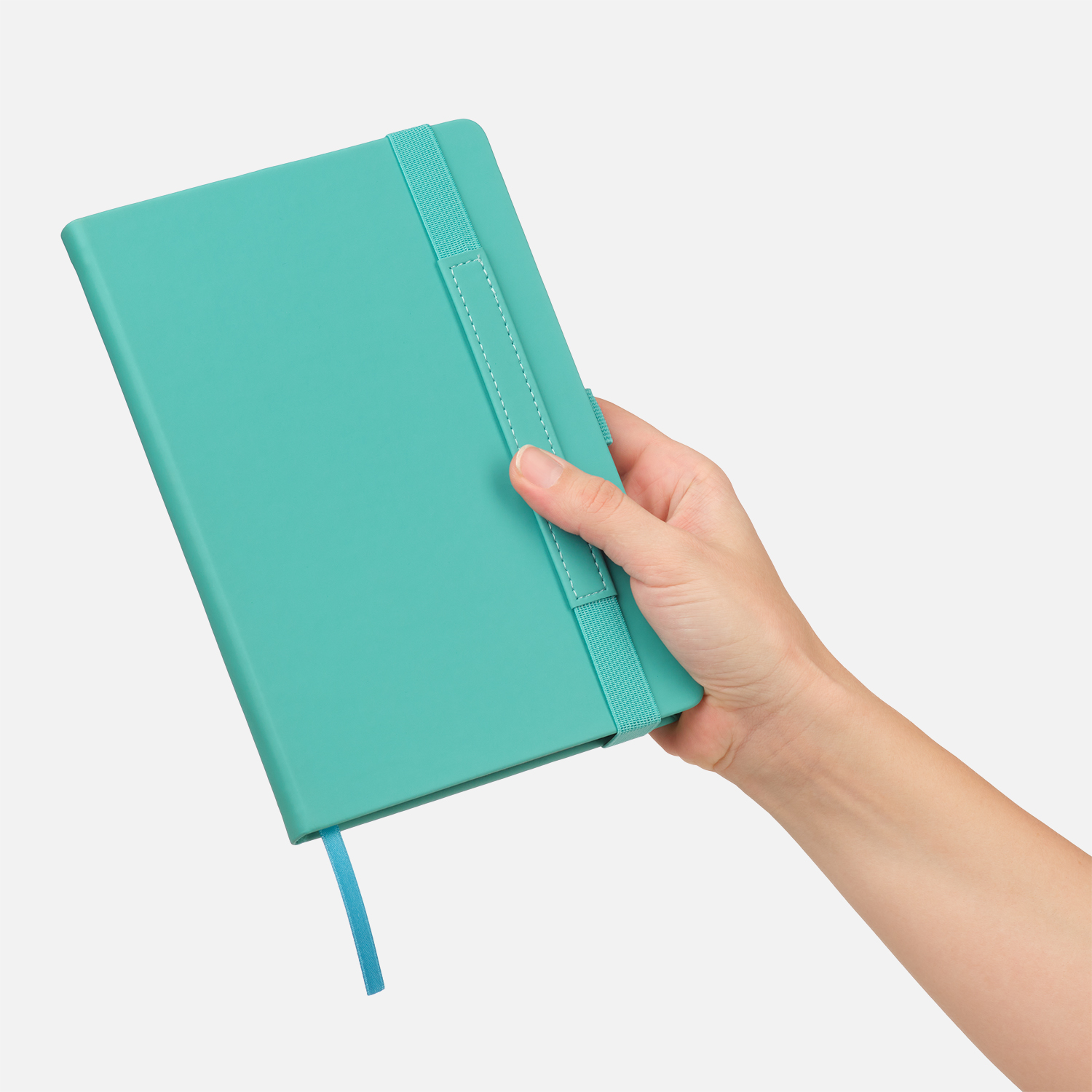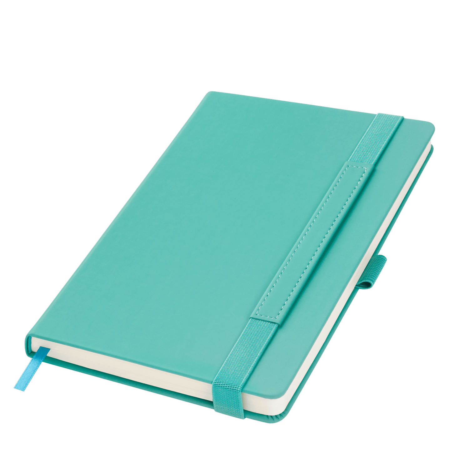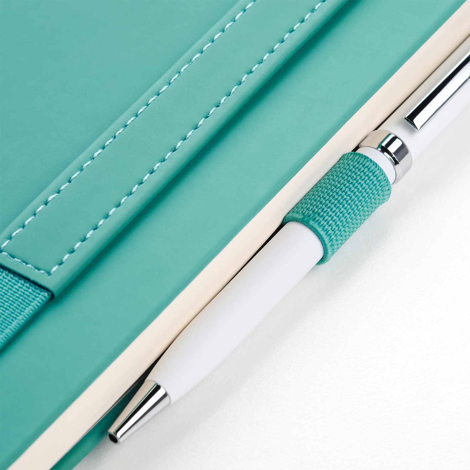 Вертикальная резинка-фиксатор с вставкой из ПУ-материала обложки и петелька под ручку, в цвет обложки