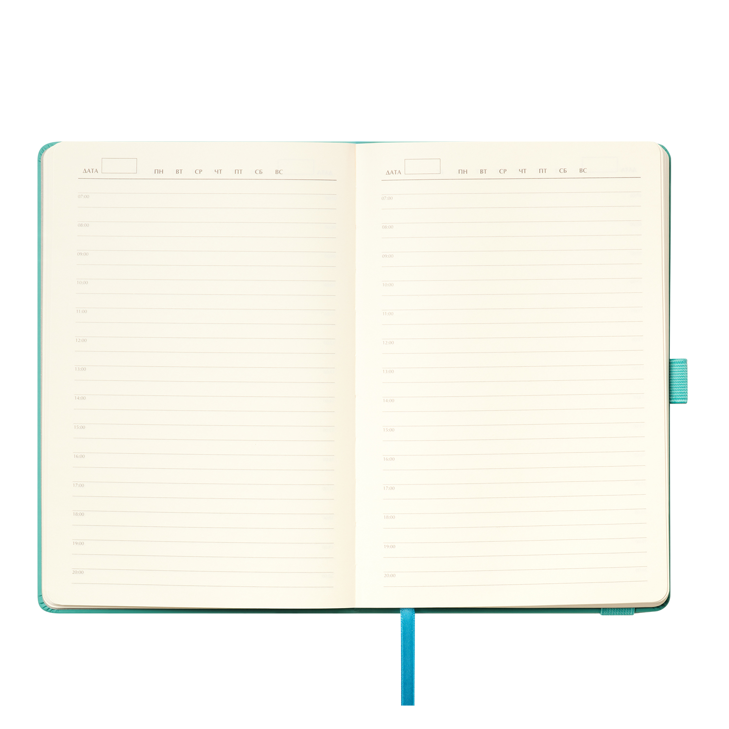 Страницы теплого кремового оттенка с легкой шелковистостью и скругленными уголками радуют глаз и приятны на ощупь. Матовый срез в тон страниц дополняет гармоничный образ. Атласное ляссе, подобранное в тон обложке, с легким блеском и шелковистой текстурой поможет вам быстро найти нужную страницу.