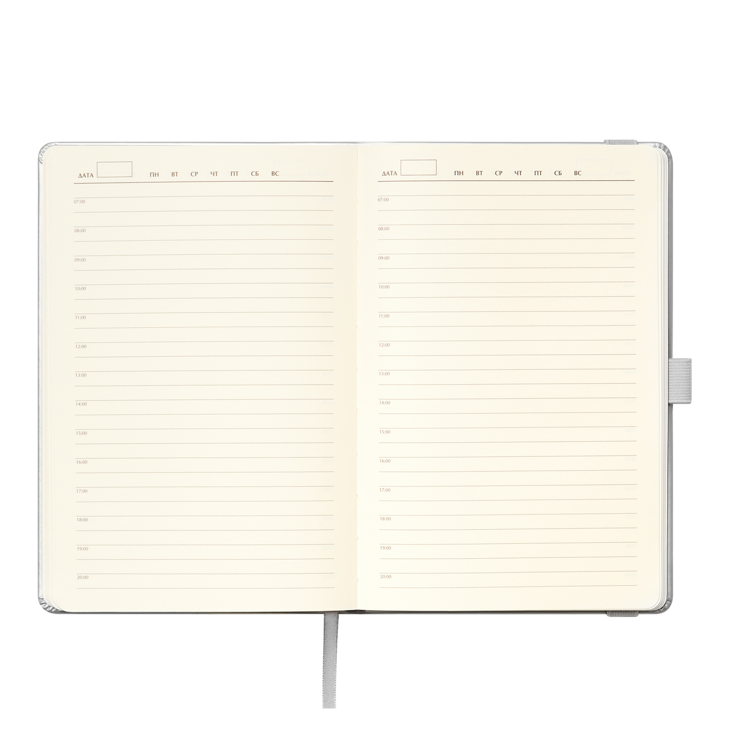 Страницы теплого кремового оттенка с легкой шелковистостью и скругленными уголками радуют глаз и приятны на ощупь. Матовый срез в тон страниц дополняет гармоничный образ. Атласное ляссе, подобранное в тон обложке, с легким блеском и шелковистой текстурой поможет вам быстро найти нужную страницу.
