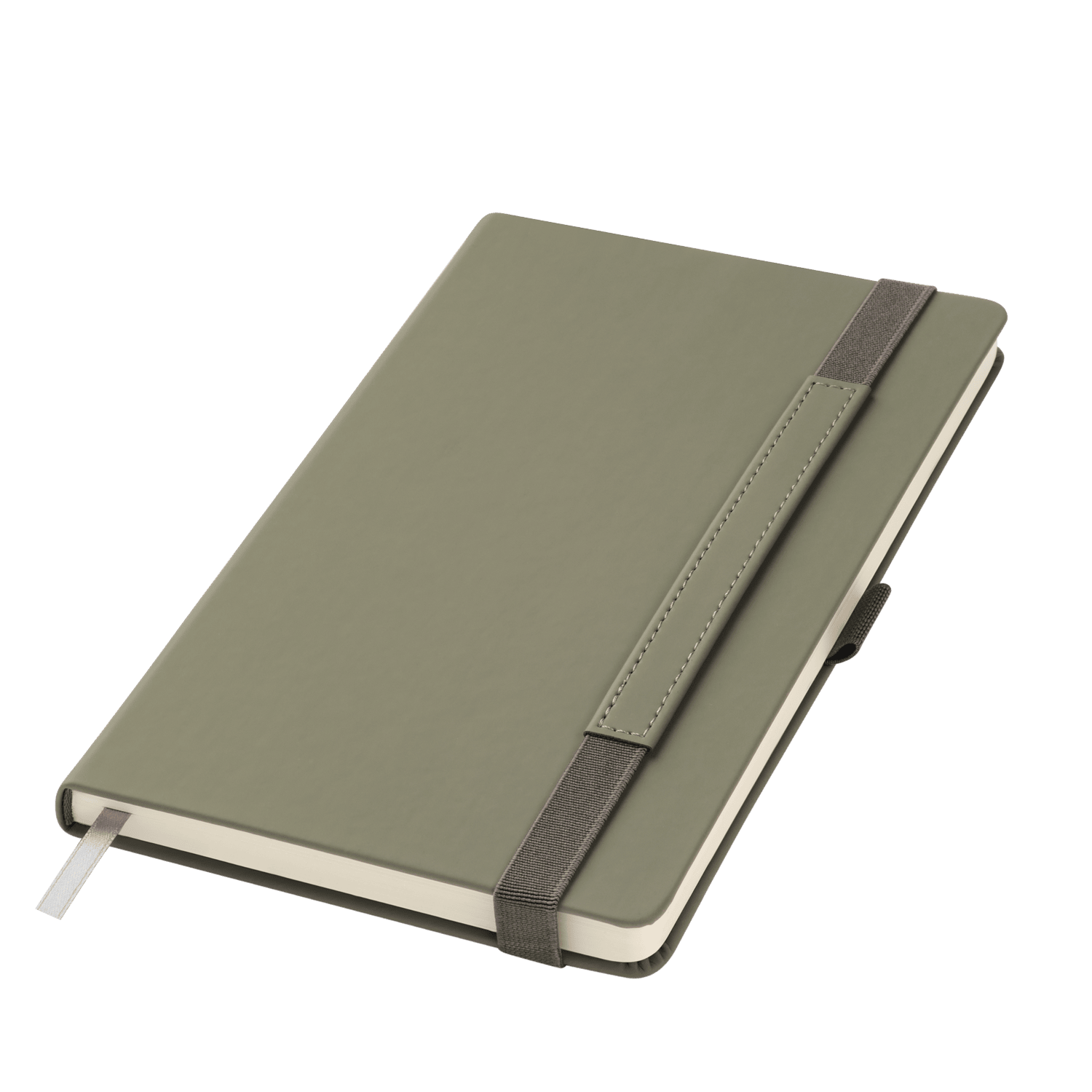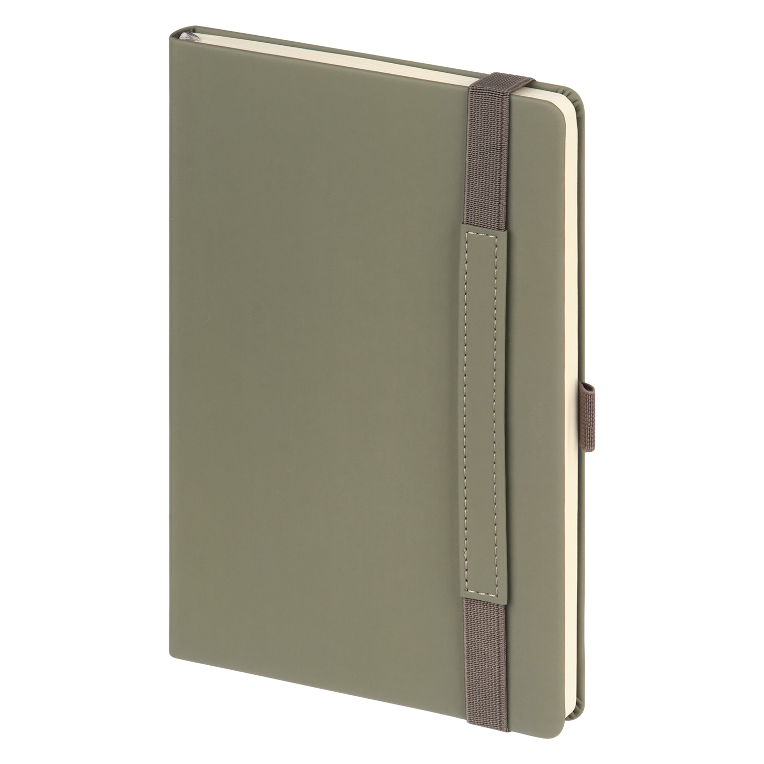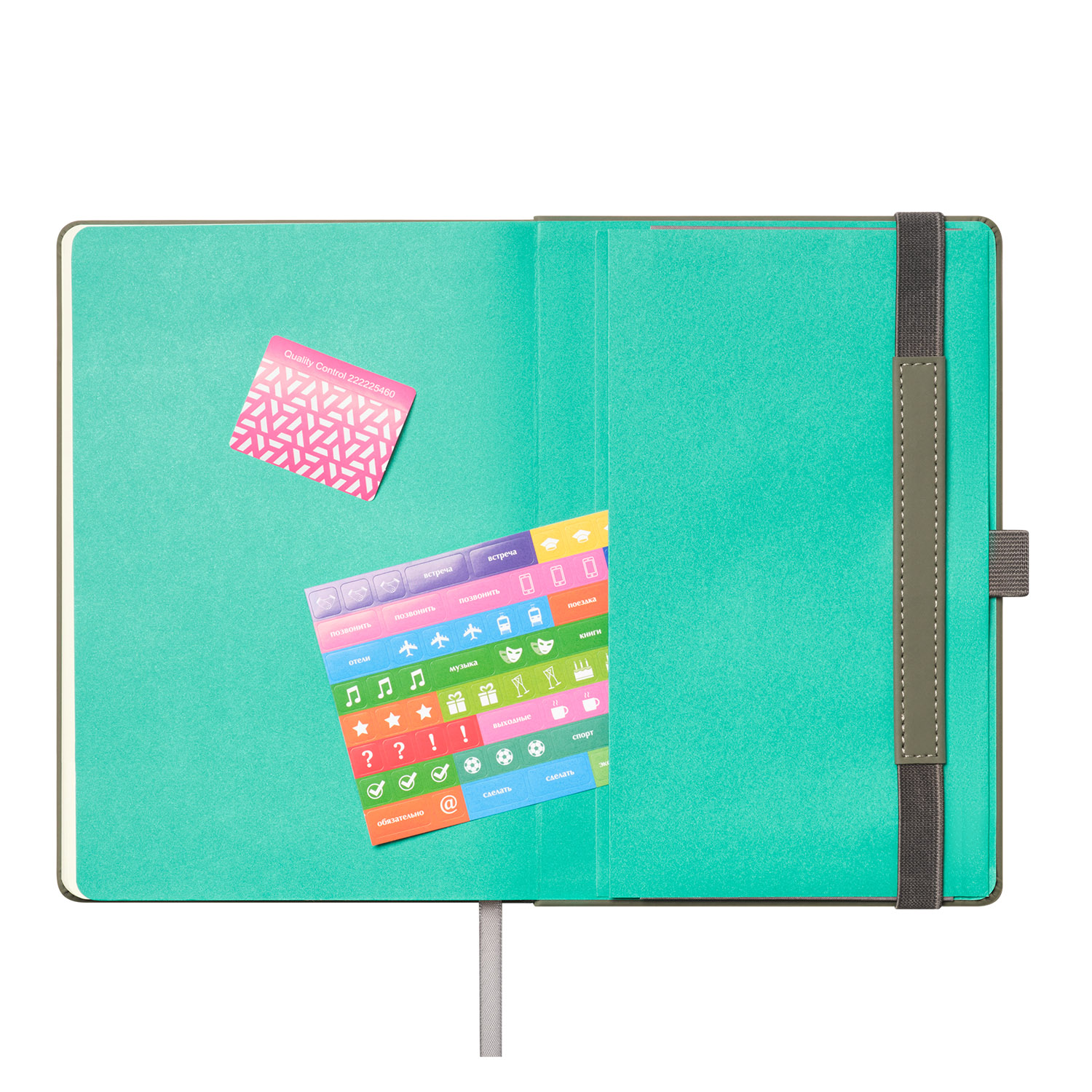 Вертикальная резинка-фиксатор с вставкой из ПУ-материала обложки и петелька под ручку, в цвет обложки