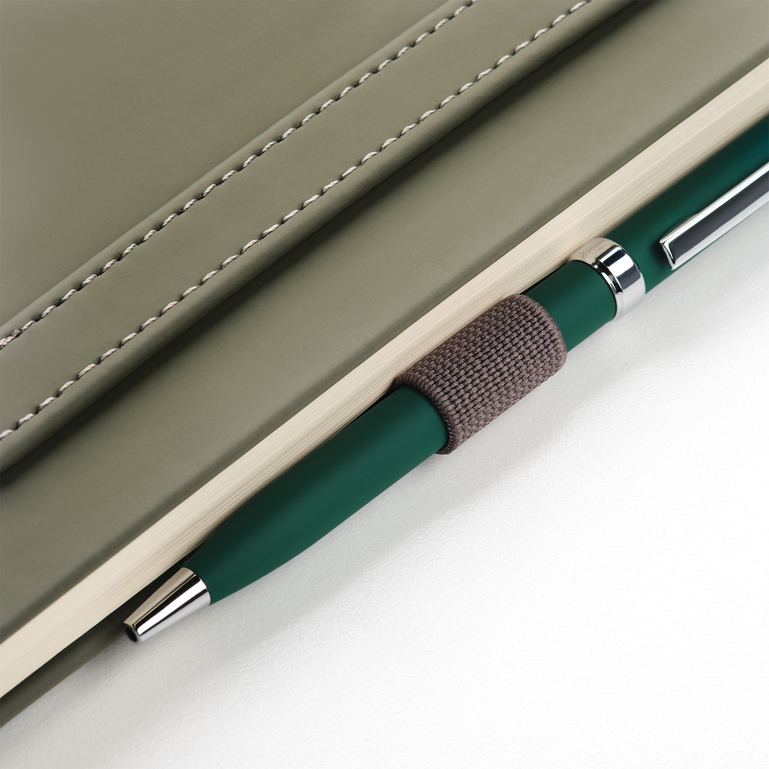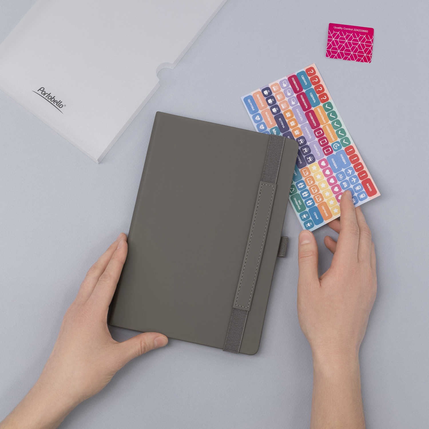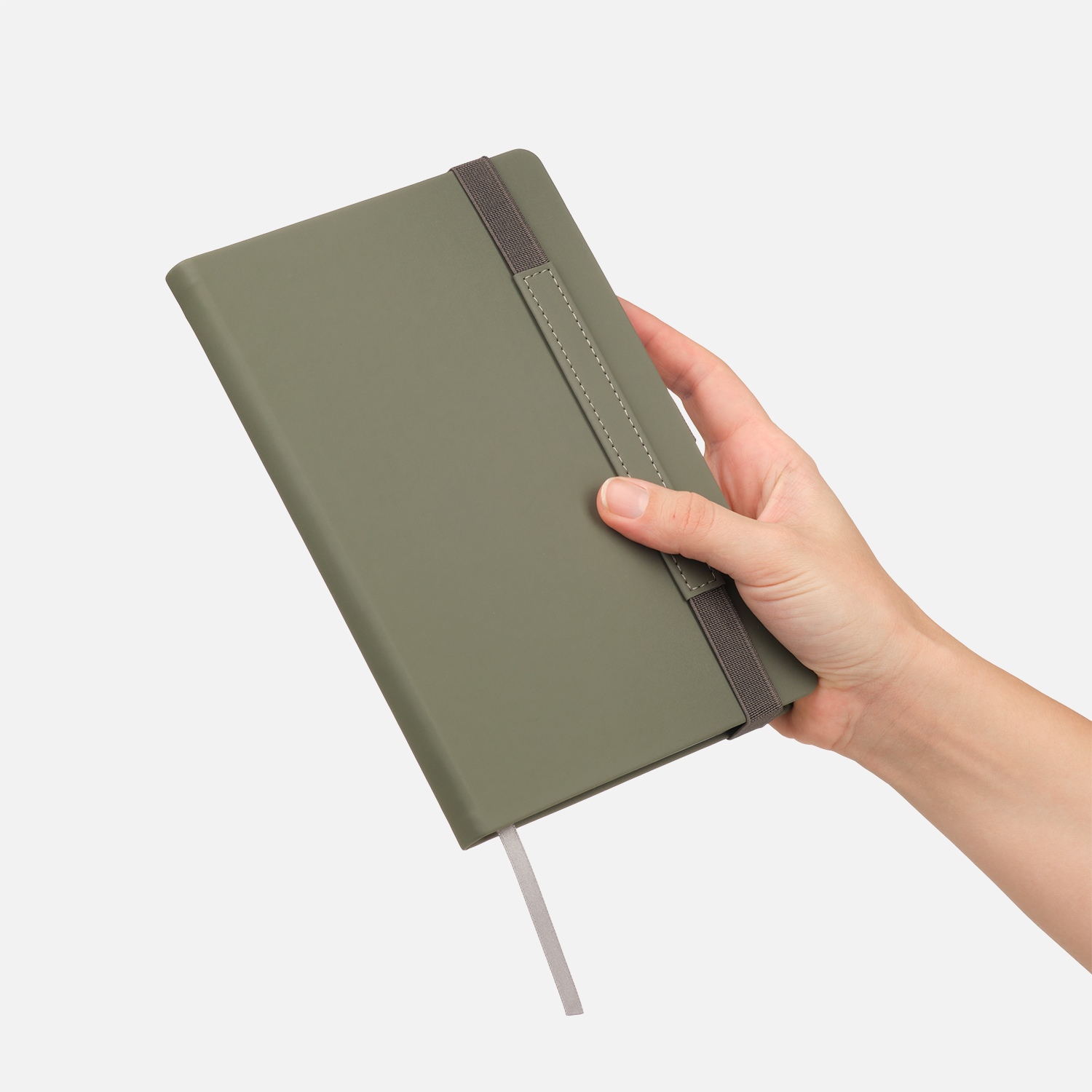 Вертикальная резинка-фиксатор с вставкой из ПУ-материала обложки и петелька под ручку, в цвет обложки