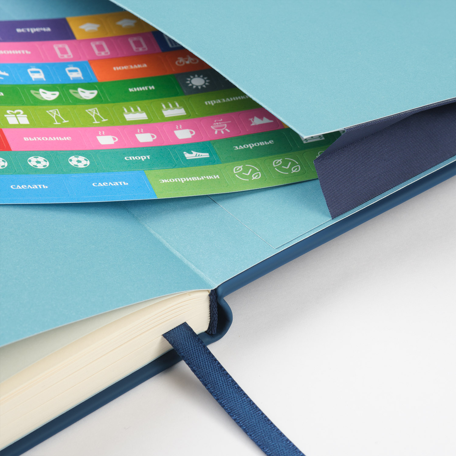 Страницы теплого кремового оттенка с легкой шелковистостью и скругленными уголками радуют глаз и приятны на ощупь. Матовый срез в тон страниц дополняет гармоничный образ. Атласное ляссе, подобранное в тон обложке, с легким блеском и шелковистой текстурой поможет вам быстро найти нужную страницу.