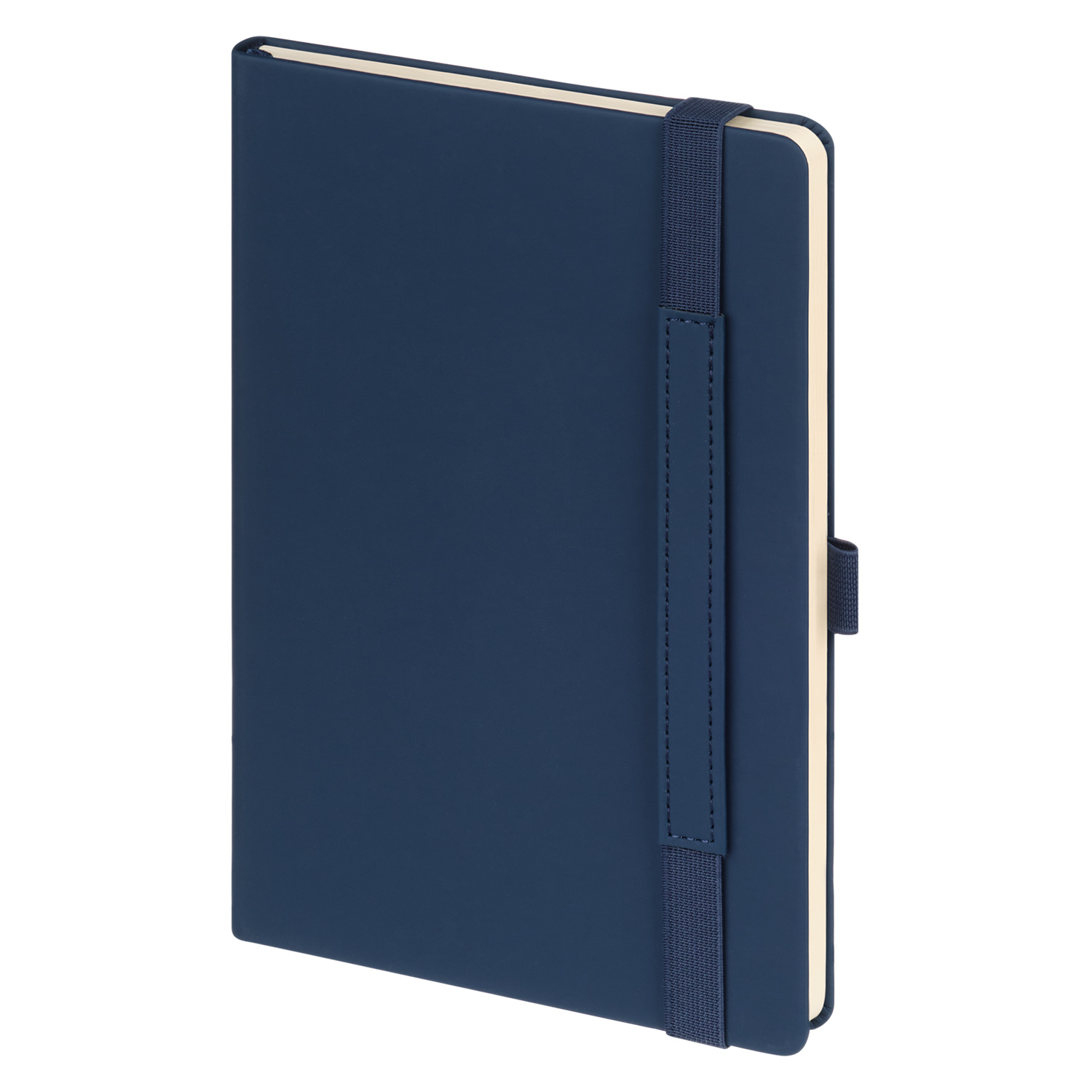 Вертикальная резинка-фиксатор с вставкой из ПУ-материала обложки и петелька под ручку, в цвет обложки