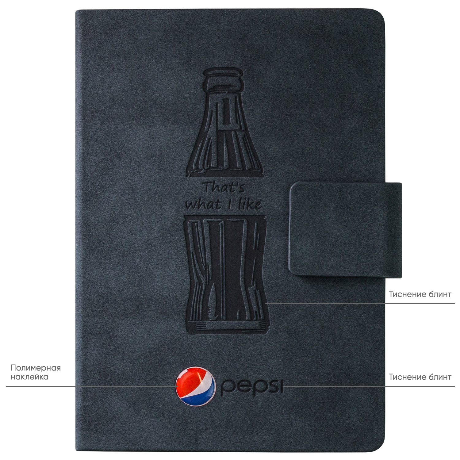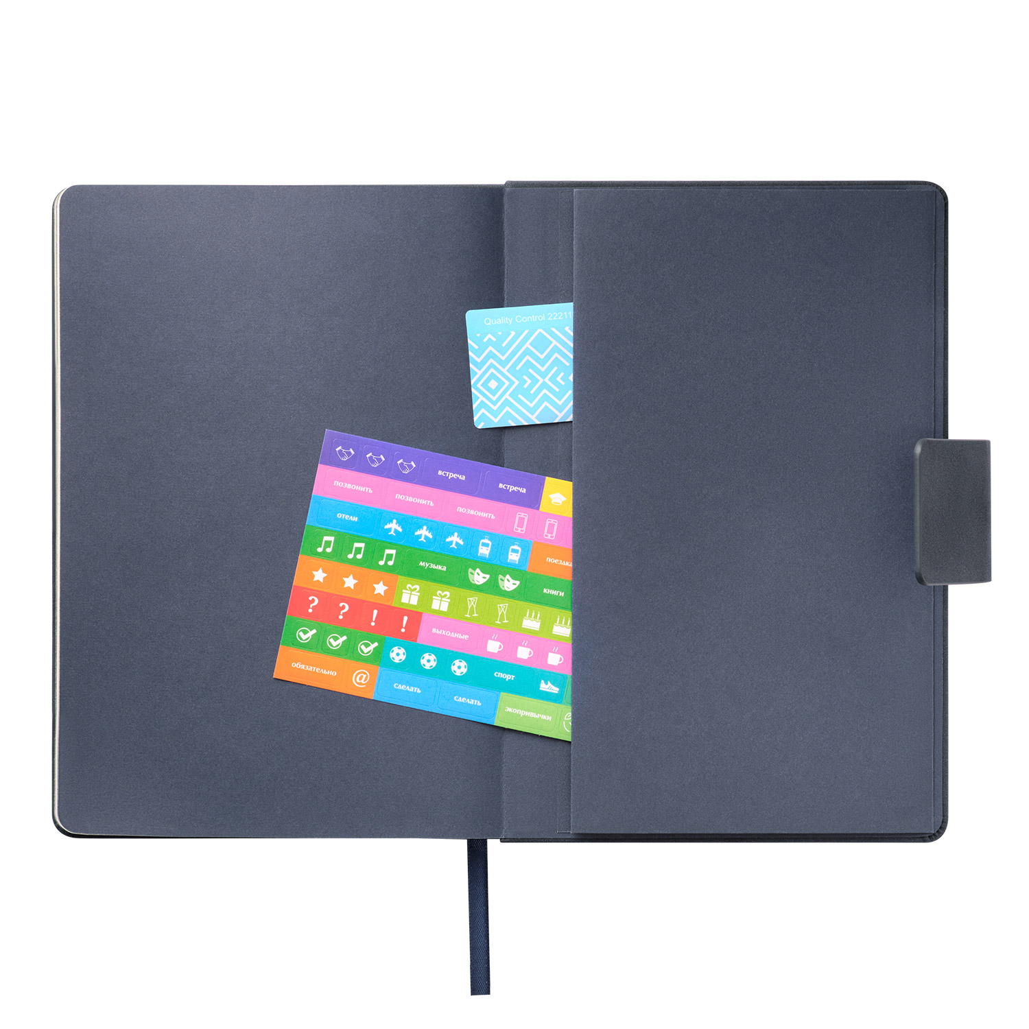 Оригинальный квадратный магнитный клапан надежно фиксирует обложку. Внутри — кремовые страницы из гладкого шелковистого офсета со скругленными уголками, форзац и нахзац, а также срез в тон обложки, создают гармоничное сочетание. Элегантное атласное ляссе дополняет изысканный образ.