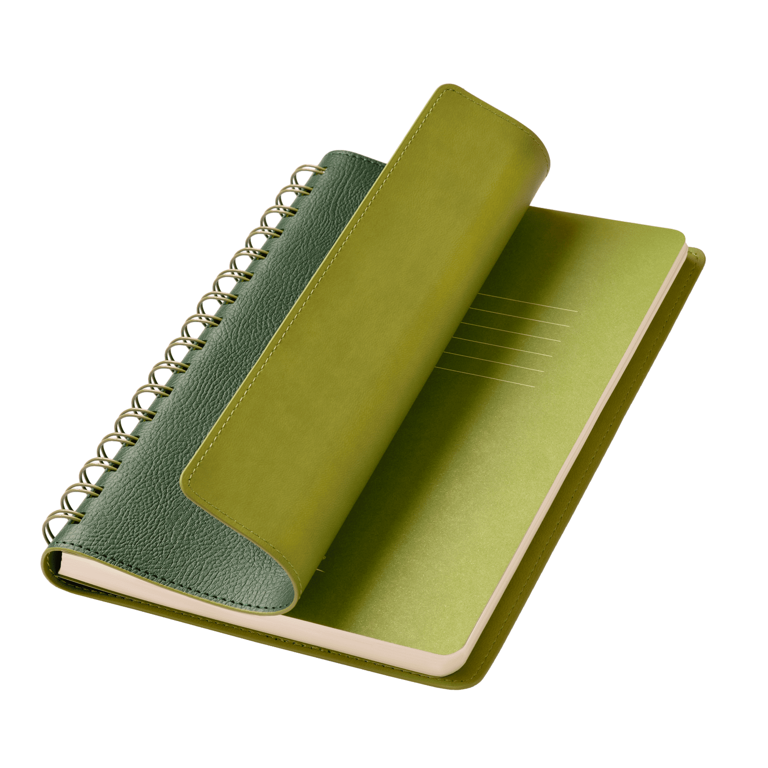 Внутренний материал обложки – Latte – бархатистый, мелкозернистый, однородного салатового цвета.