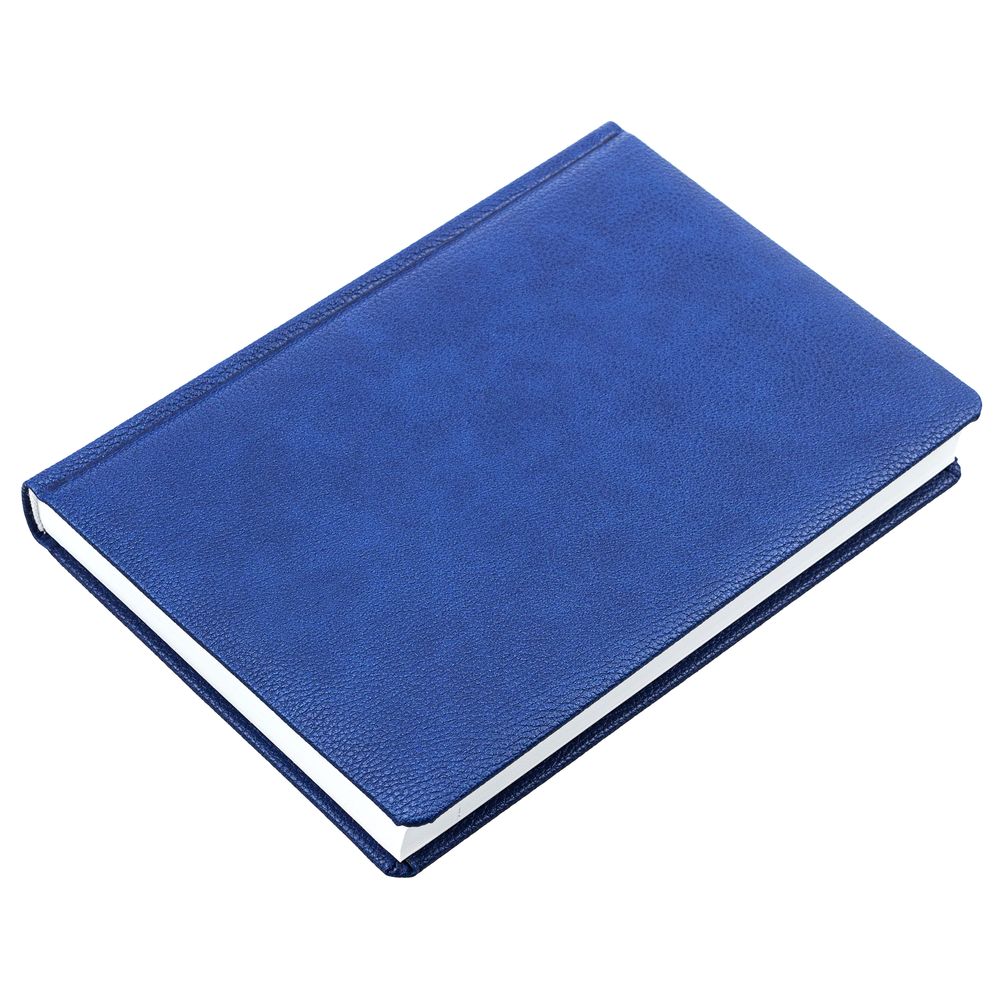 Ежедневник в твердой обложке c поролоном, выполнен из материала La Fite, синий НН, дополнен ляссе белого цвета.