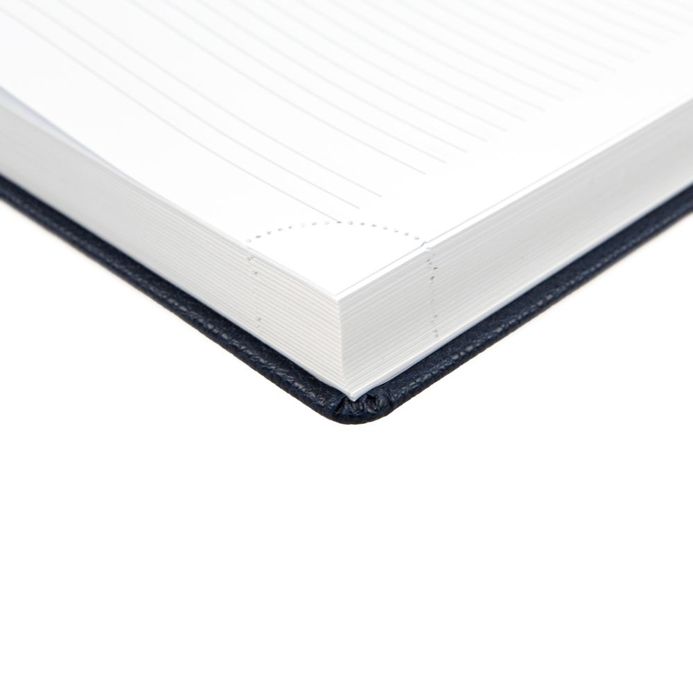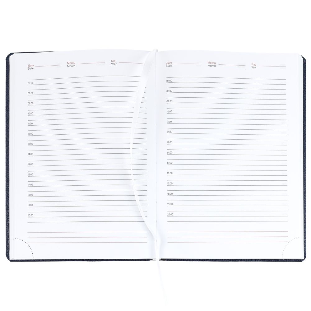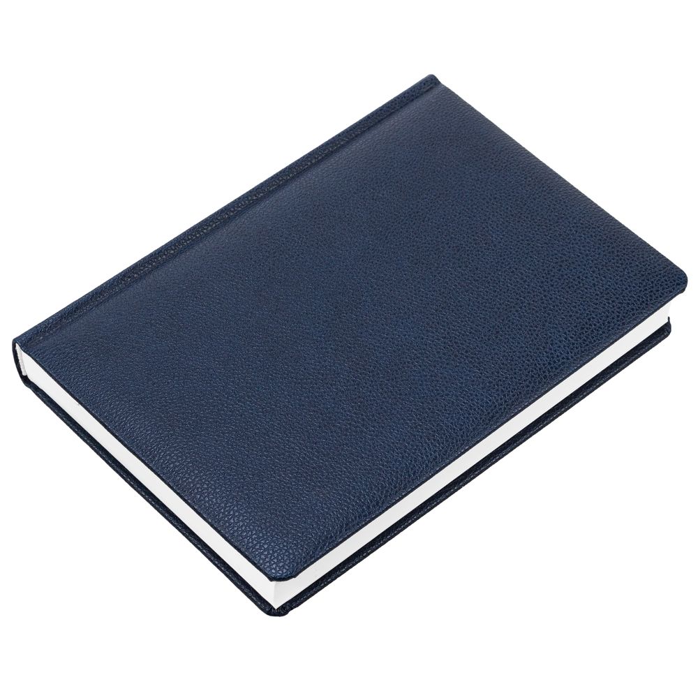Ежедневник в твердой обложке c поролоном, выполнен из материала La Fite, темно-синий ХХ, дополнен ляссе белого цвета.