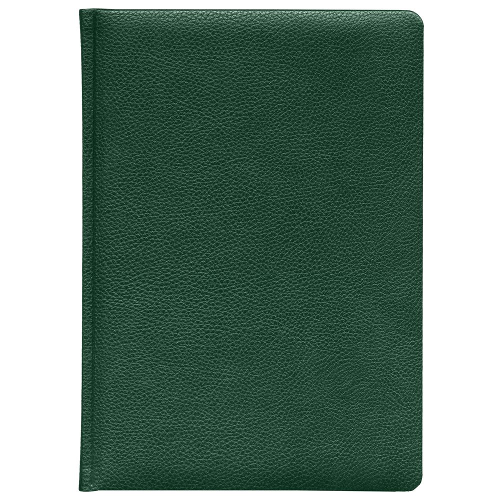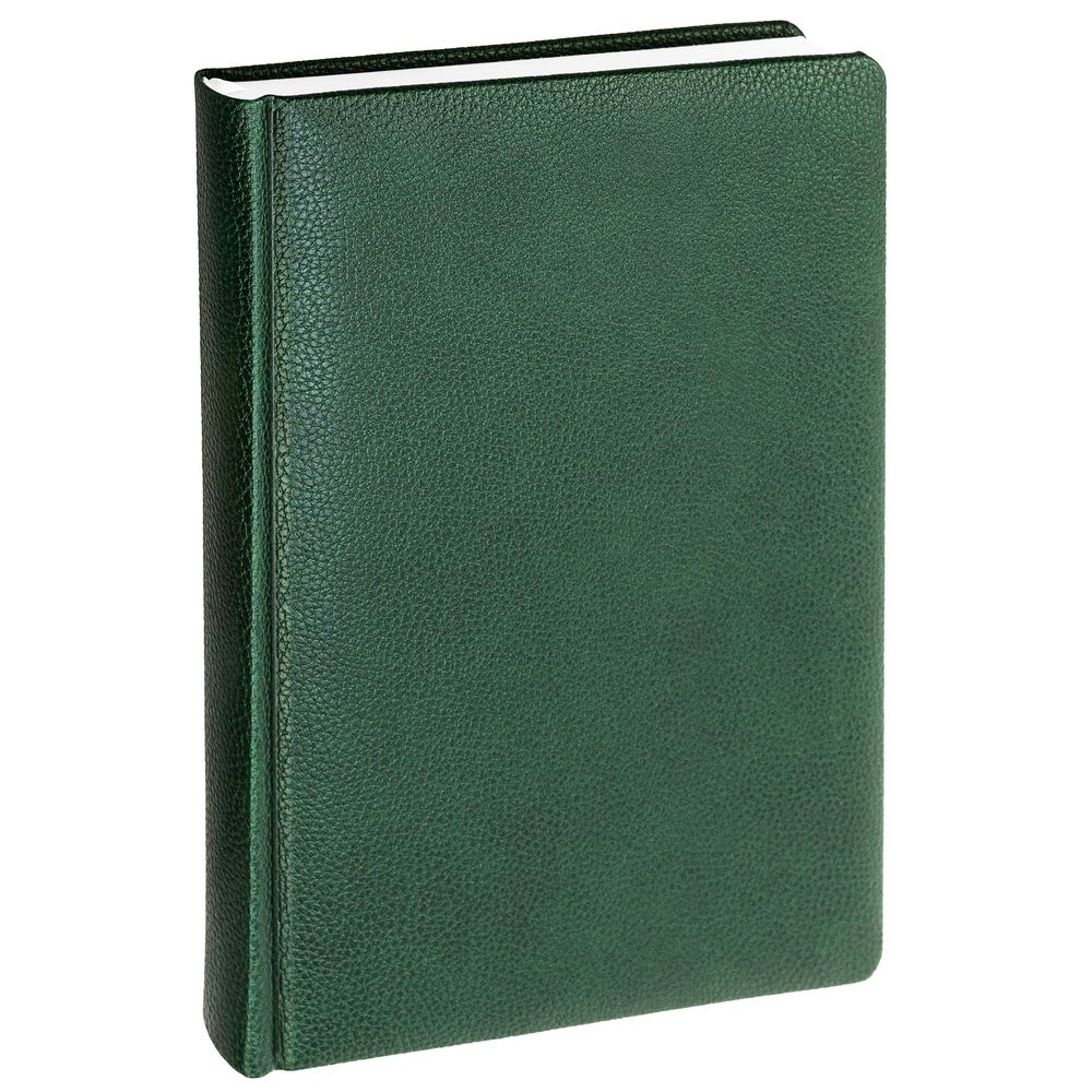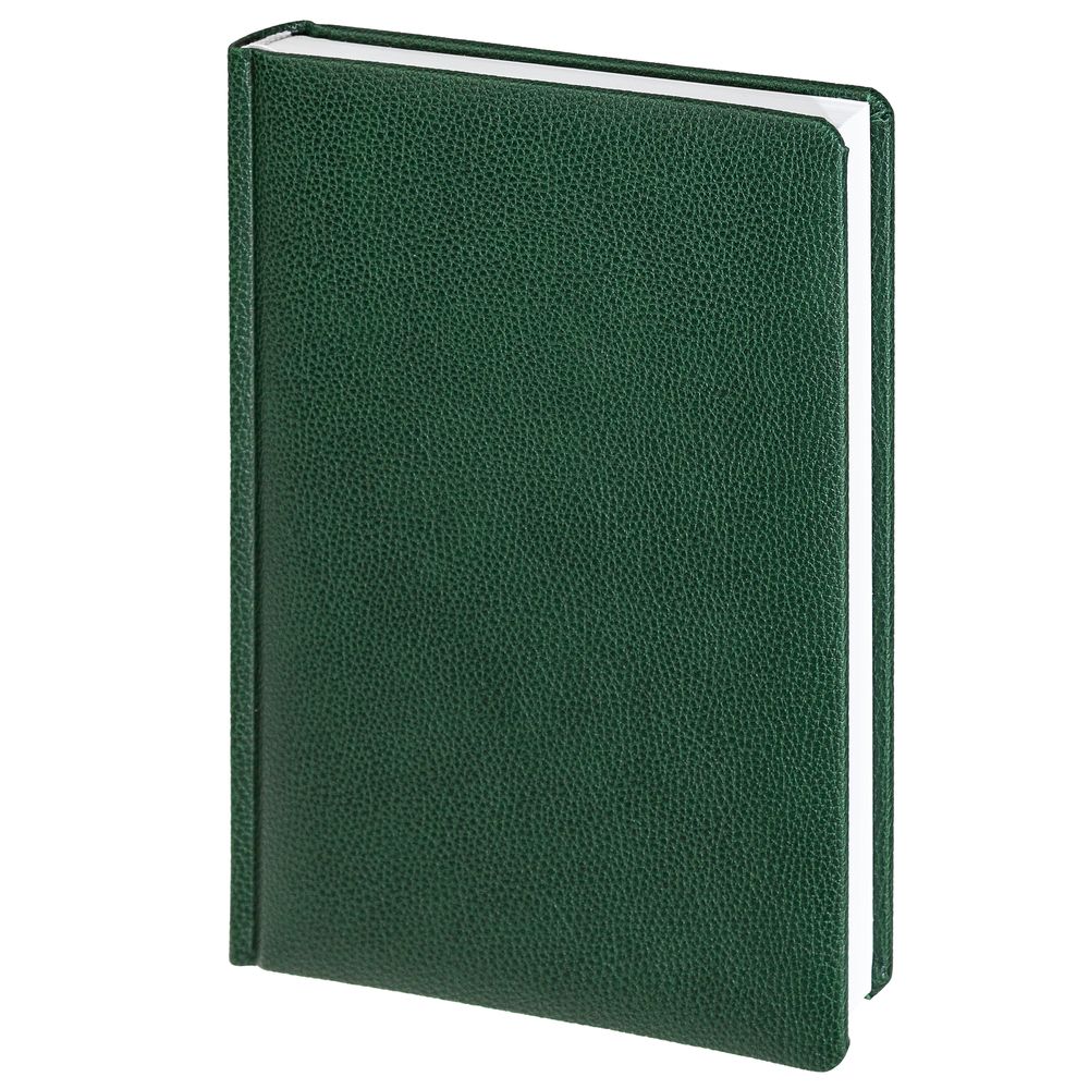 Ежедневник в твердой обложке c поролоном, выполнен из материала La Fite, зеленый FF, дополнен ляссе белого цвета.