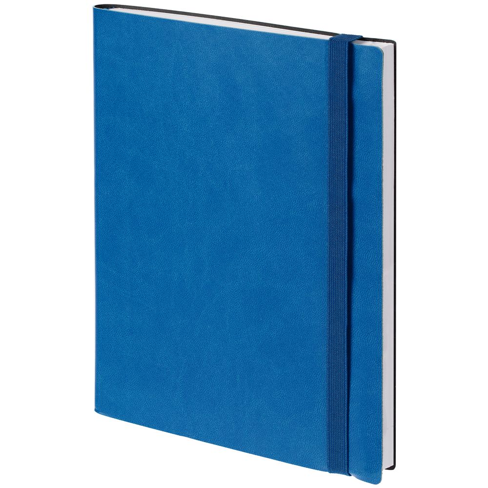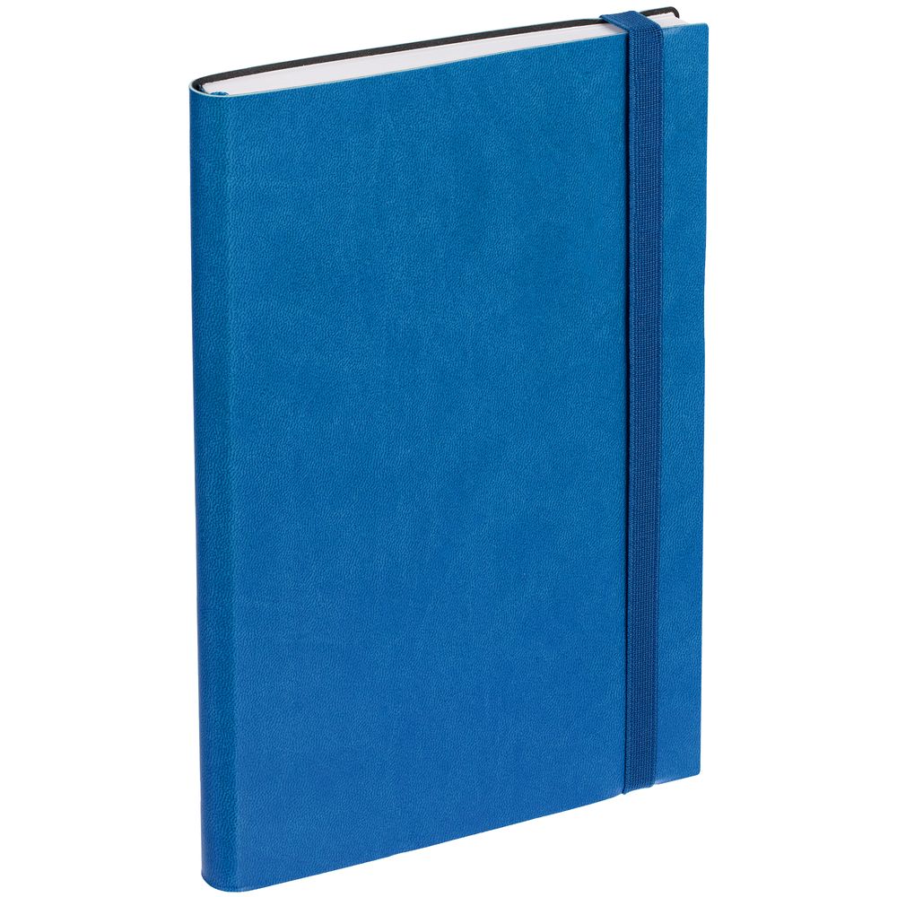 Ежедневник с гибкой обложкой, выполнен из материала Latte, синий НН, дополнен резинкой шириной 1 см, капталом и ляссе синего цвета.