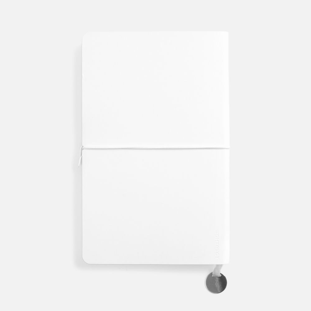 Ежедневник с гибкой обложкой, выполнен из материала Waltz, белый BB, дополнен ляссе в цвет обложки с металлическим шильдом.