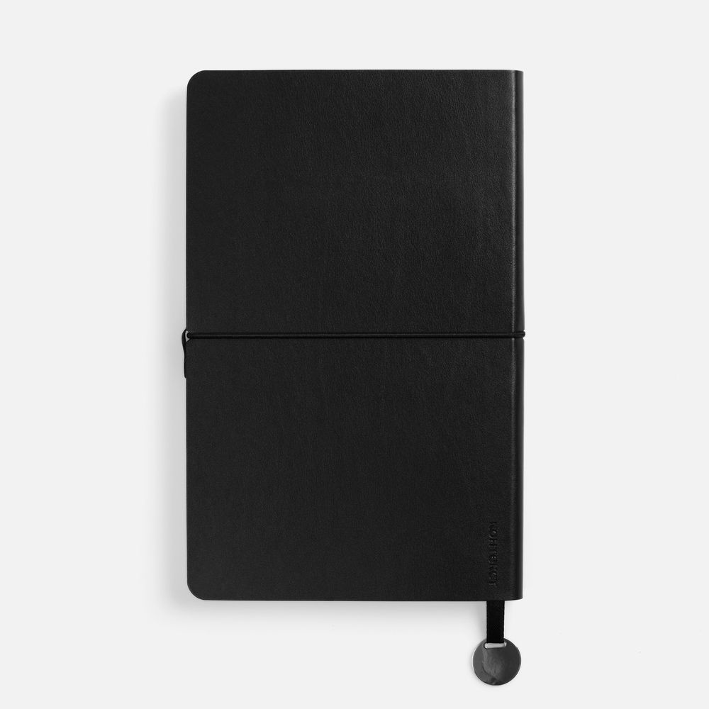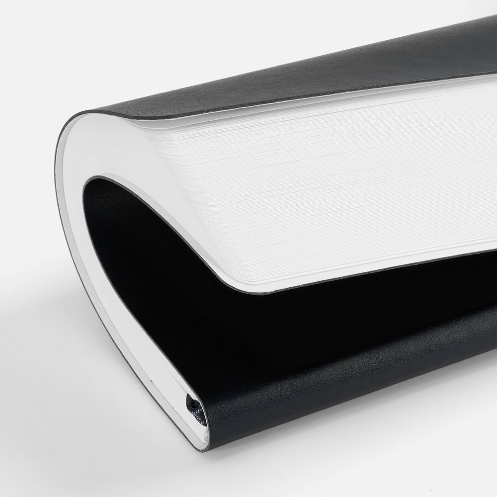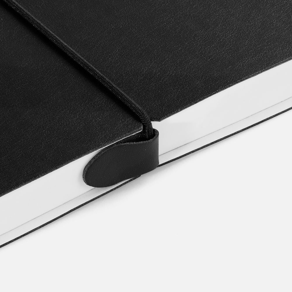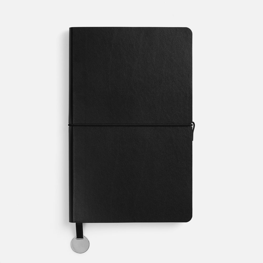 Ежедневник с гибкой обложкой, выполнен из материала Waltz, черный АА, дополнен ляссе в цвет обложки с металлическим шильдом.