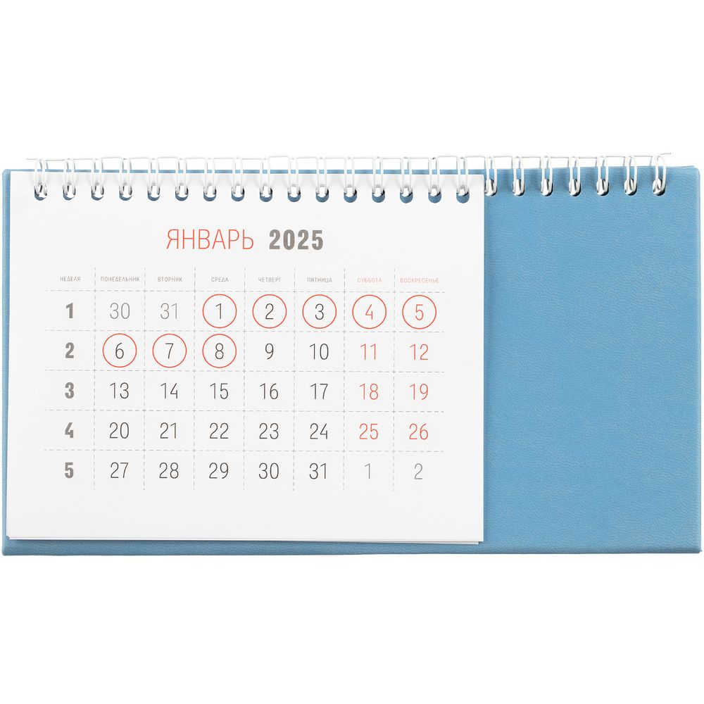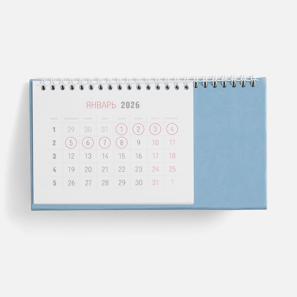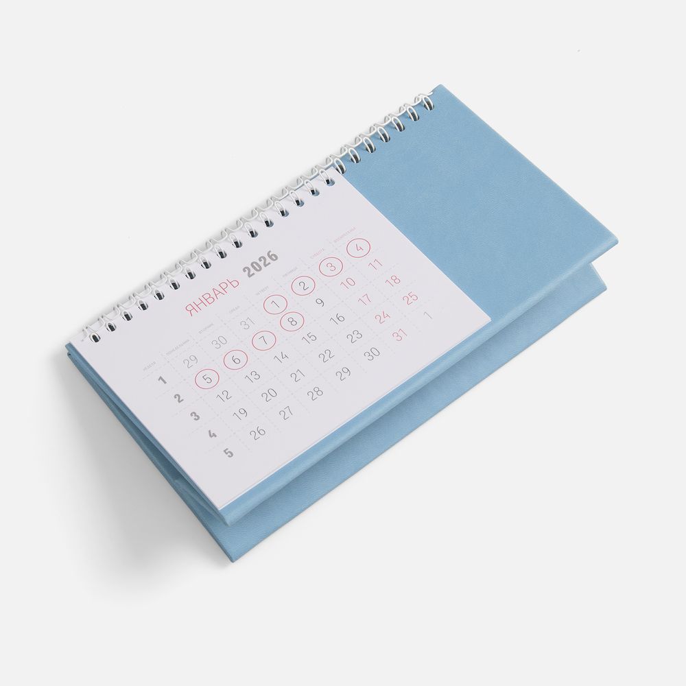 Настольный, перекидной календарь-домик выполнен из материала Latte, голубой JJ. -