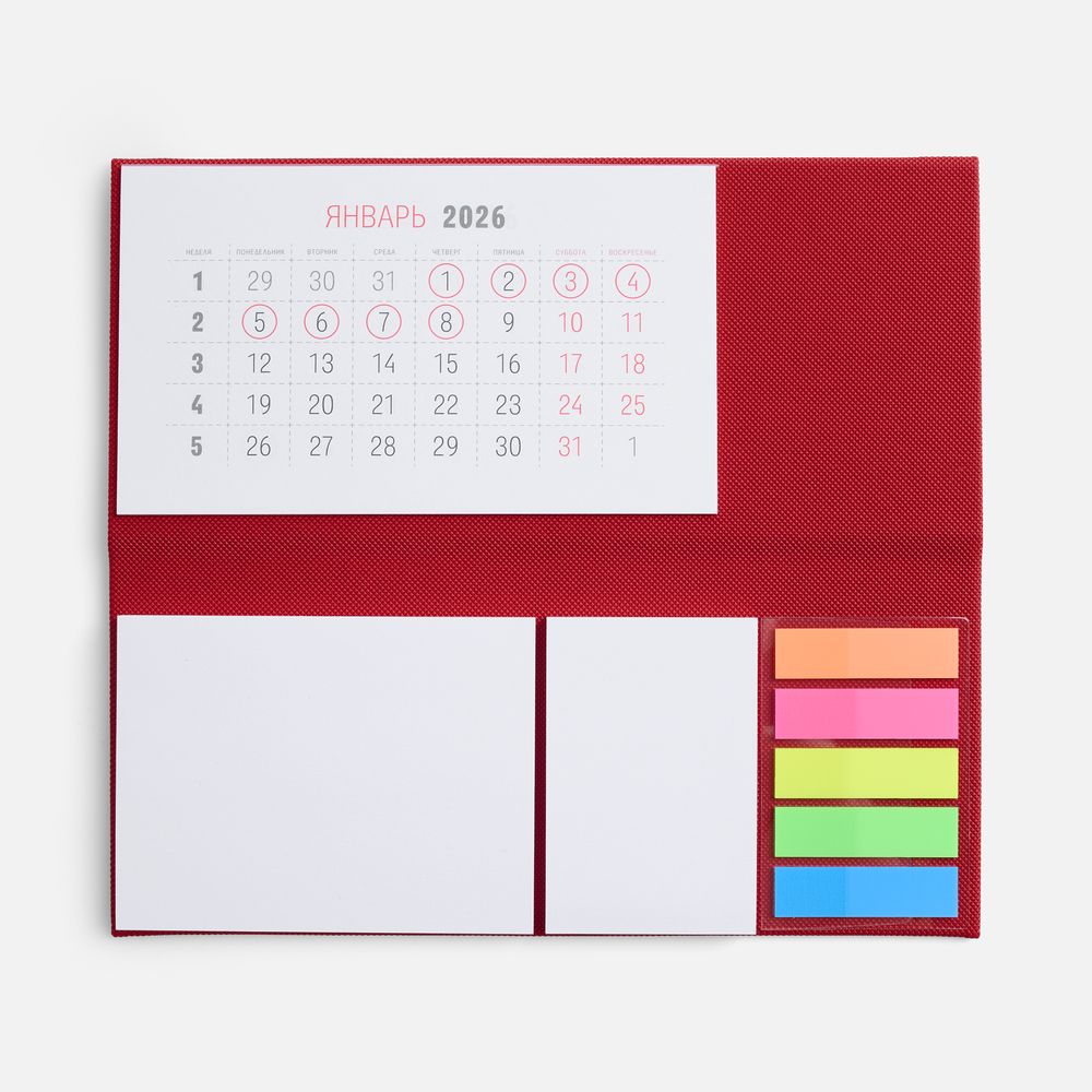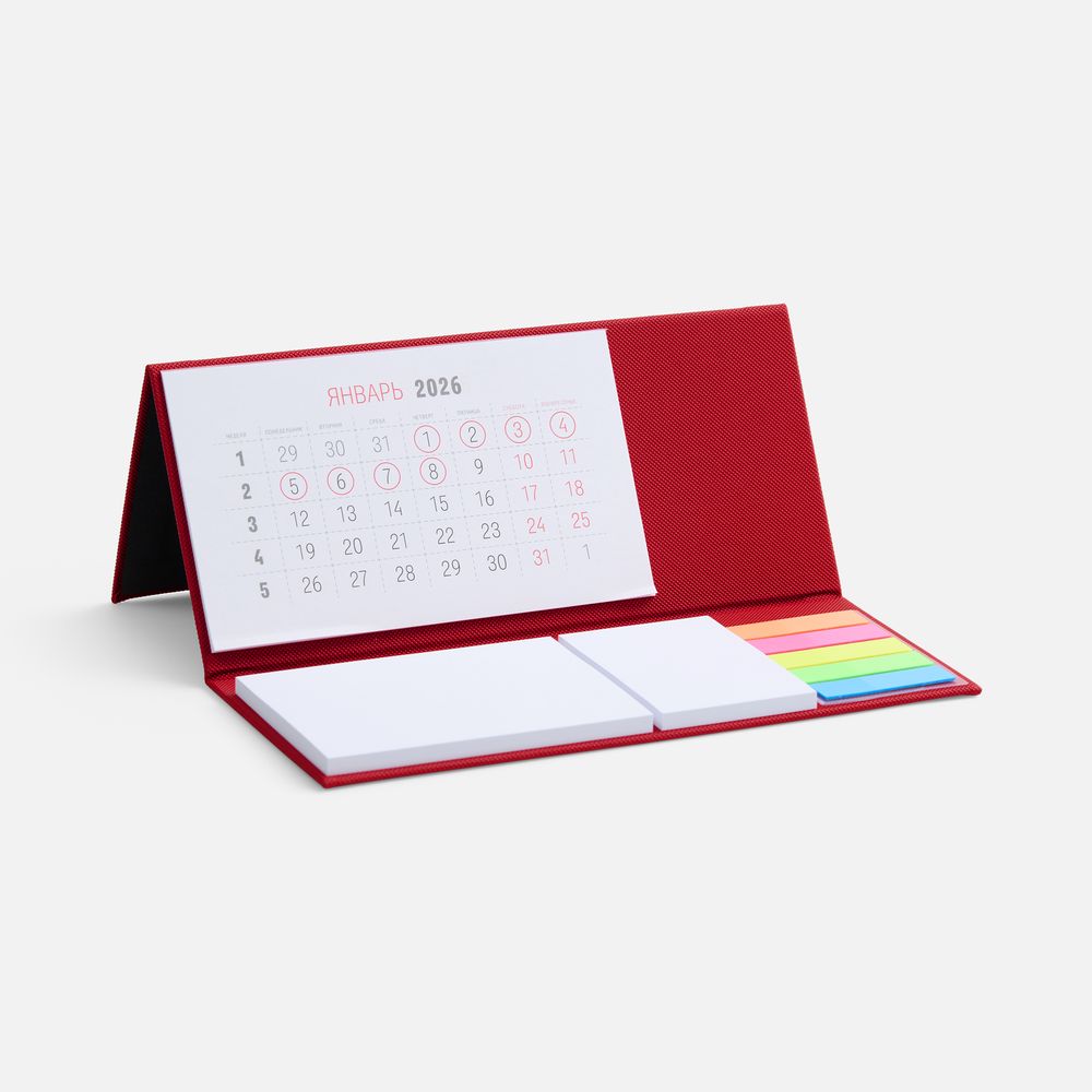 Настольный календарь-домик из материала Canyon, красный РР.- Календарь 14,5х8,6 см, 12 листов;