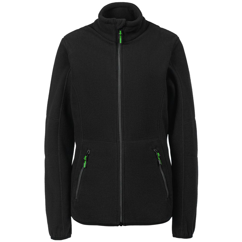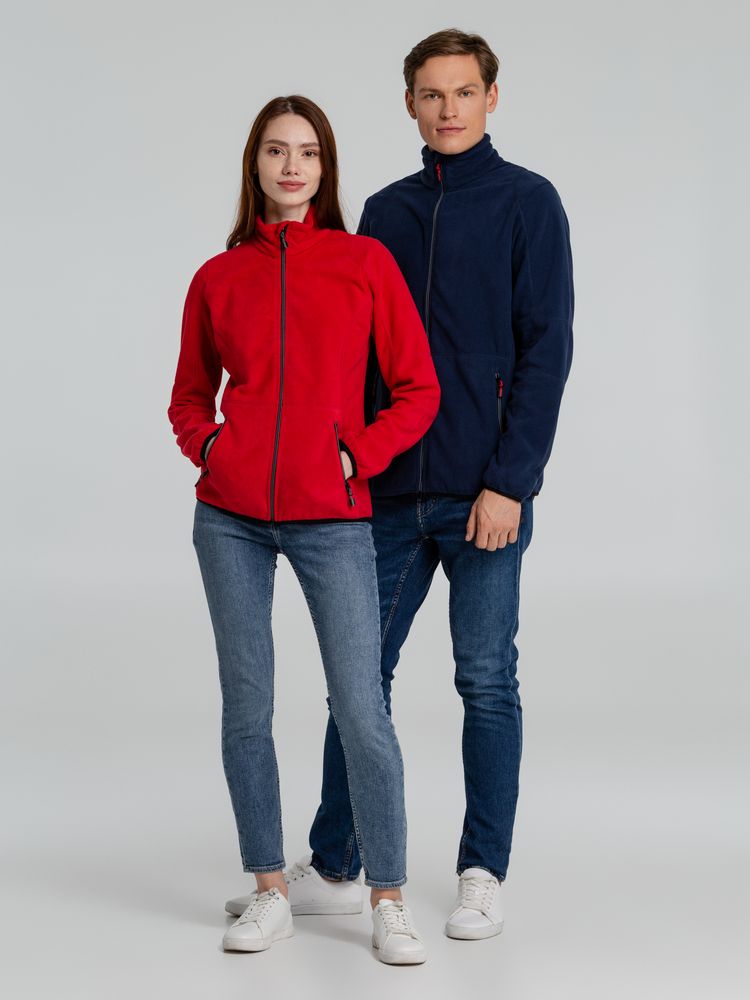 Женская флисовая толстовка с застежкой-молнией и двумя передними карманами на молниях. Декоративные плоские швы. Есть возможность подобрать цвет пуллеров для максимального соответствия визуальному стилю фирмы.